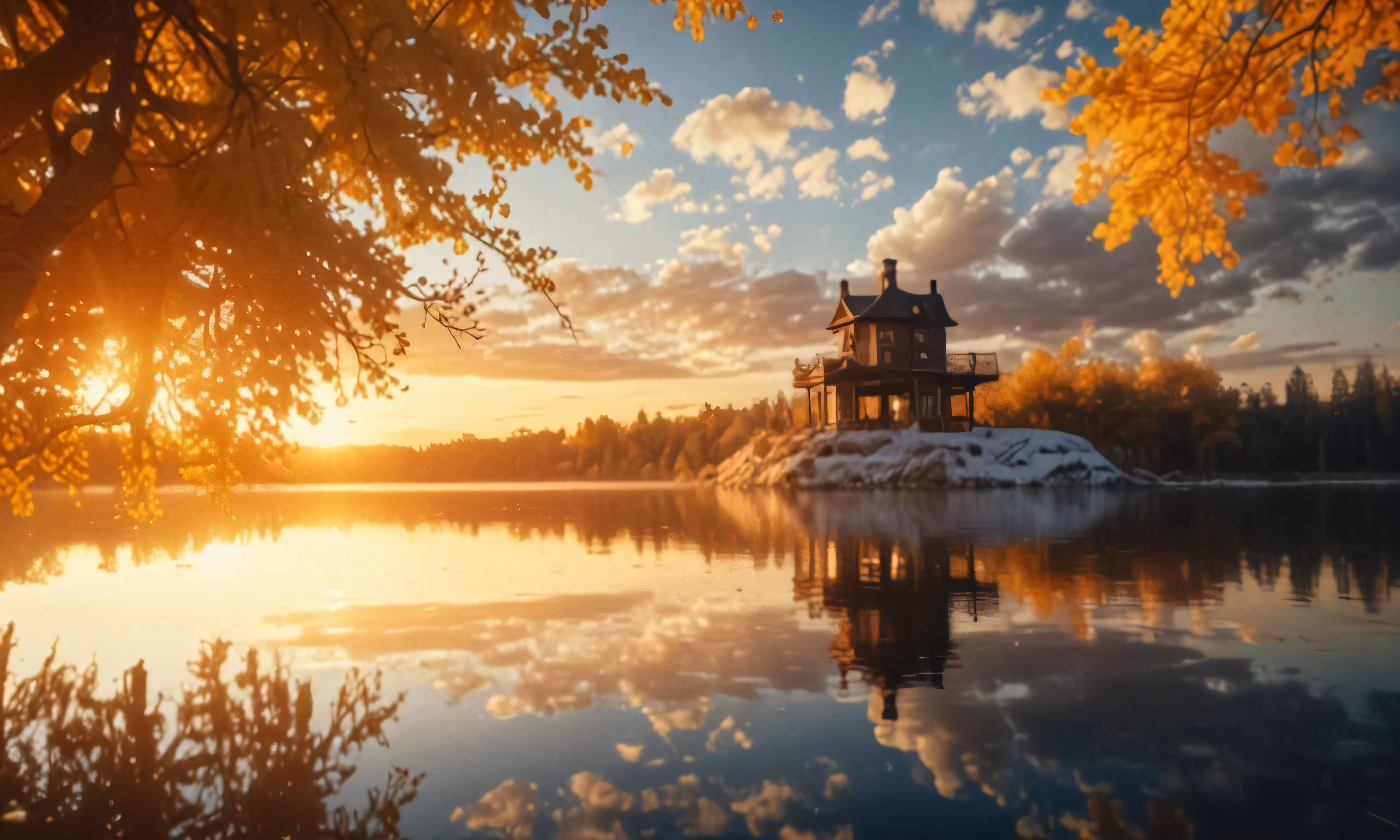 High resolution picture, free to use, the sun is shining on the sky over a lake