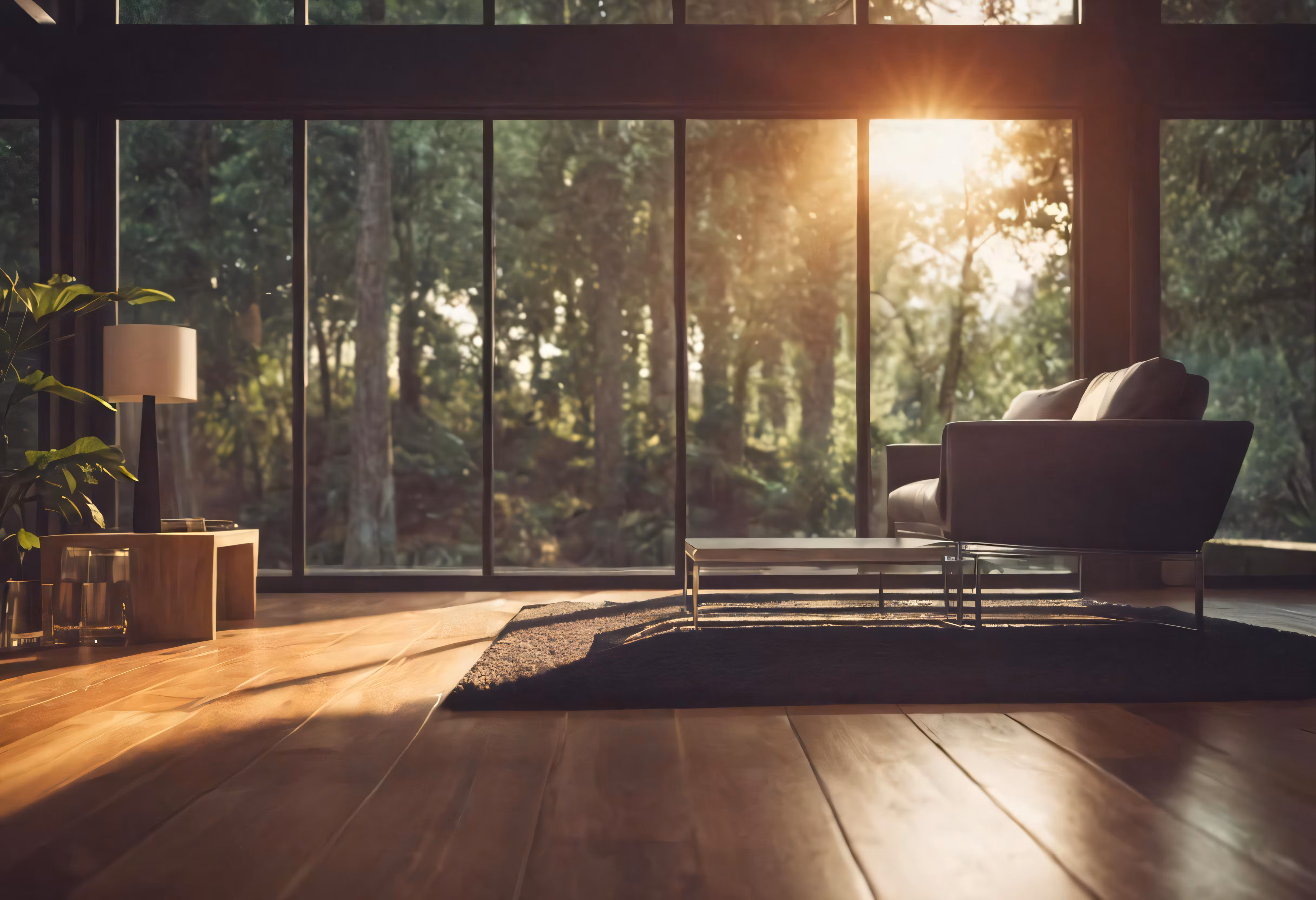 High resolution picture, free to use, the sun is shining through windows into a living room