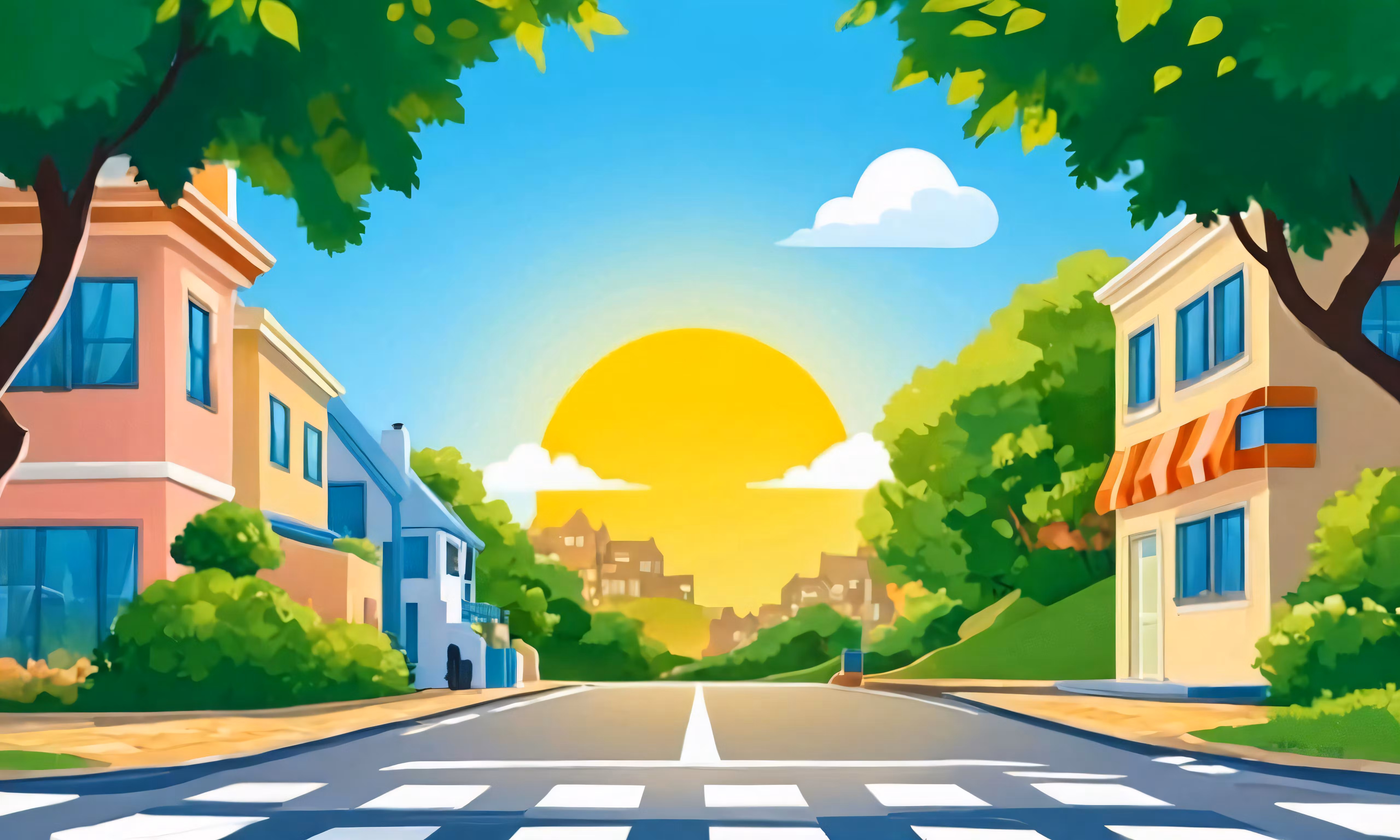 High resolution picture, free to use, the sun rises over buildings in a neighborhood