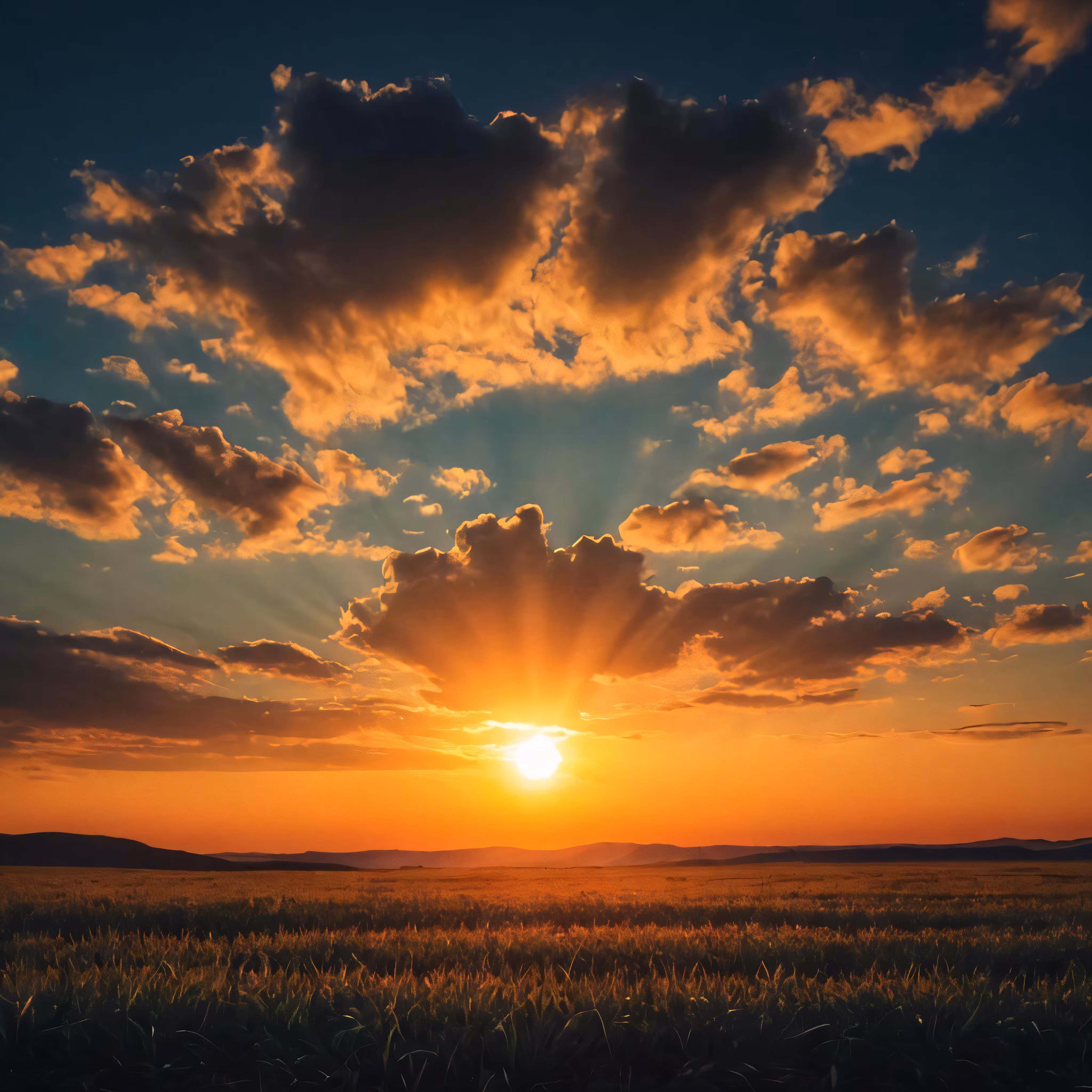 High resolution picture, free to use, the sun rising over a large field in the daytime