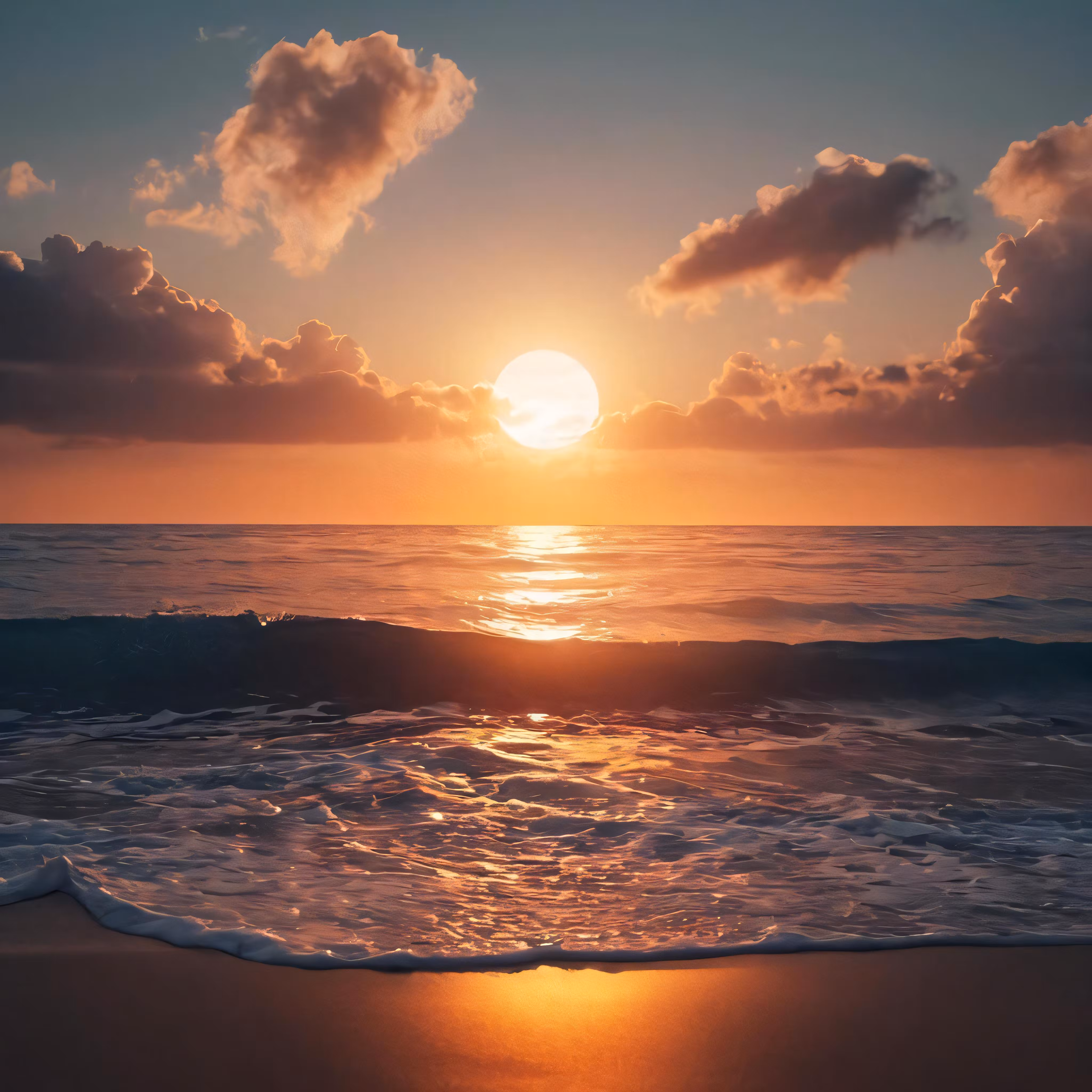 High resolution picture, free to use, the sun rising over the ocean on a sunny day
