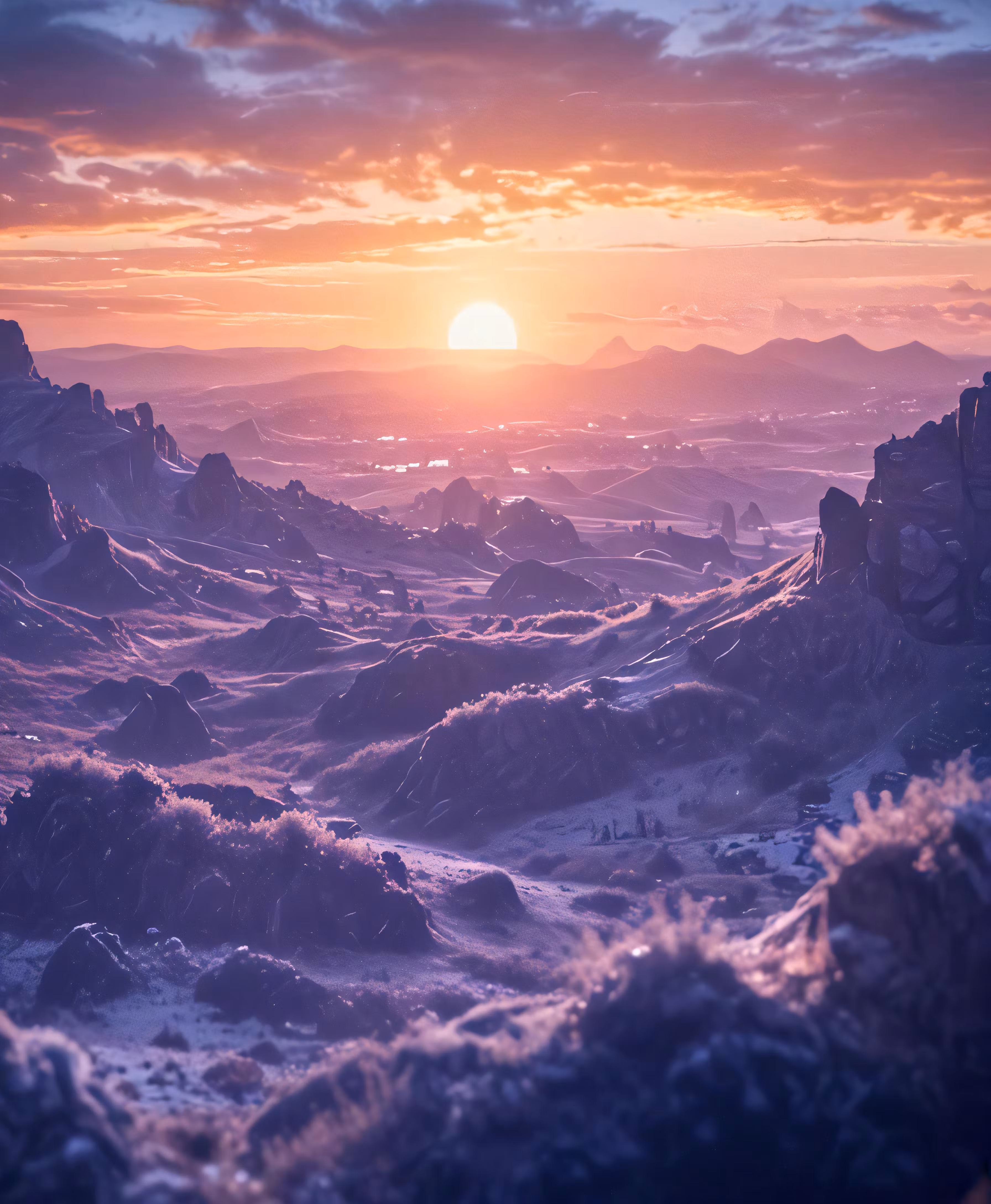 High resolution picture, free to use, the sun sets over a rocky desert landscape