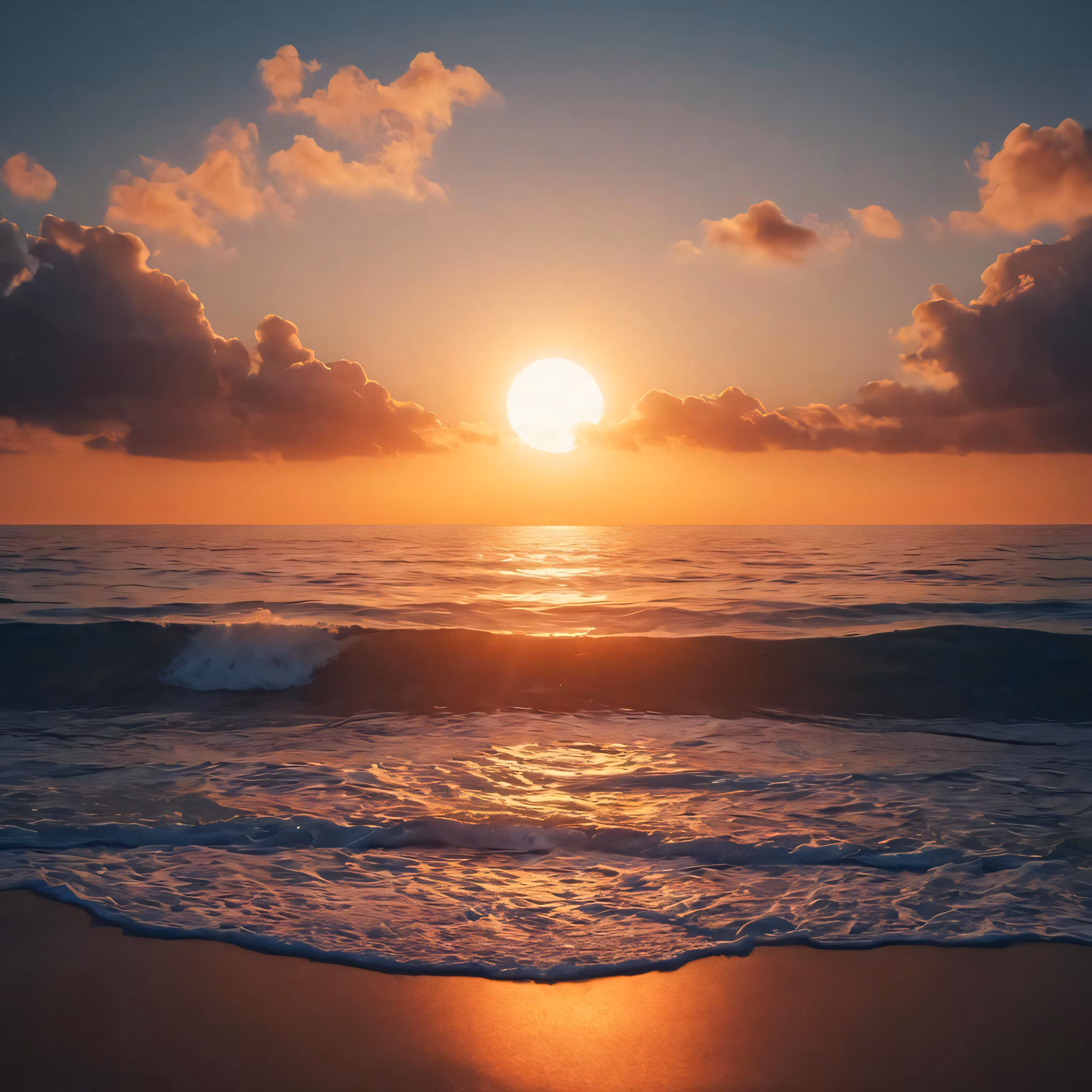 High resolution picture, free to use, the sun sets over the ocean waves at a beach
