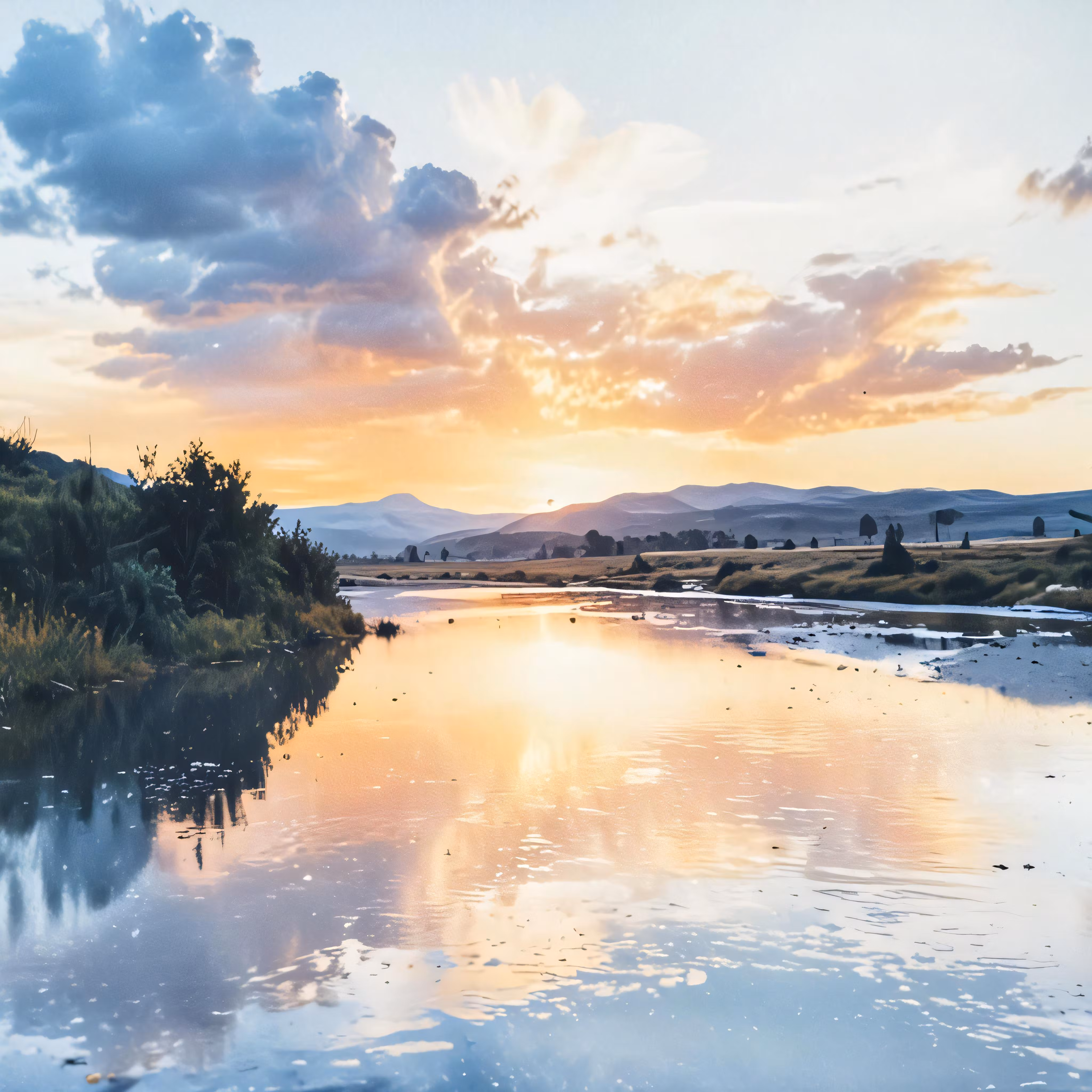 High resolution picture, free to use, the sun setting over the water near a river