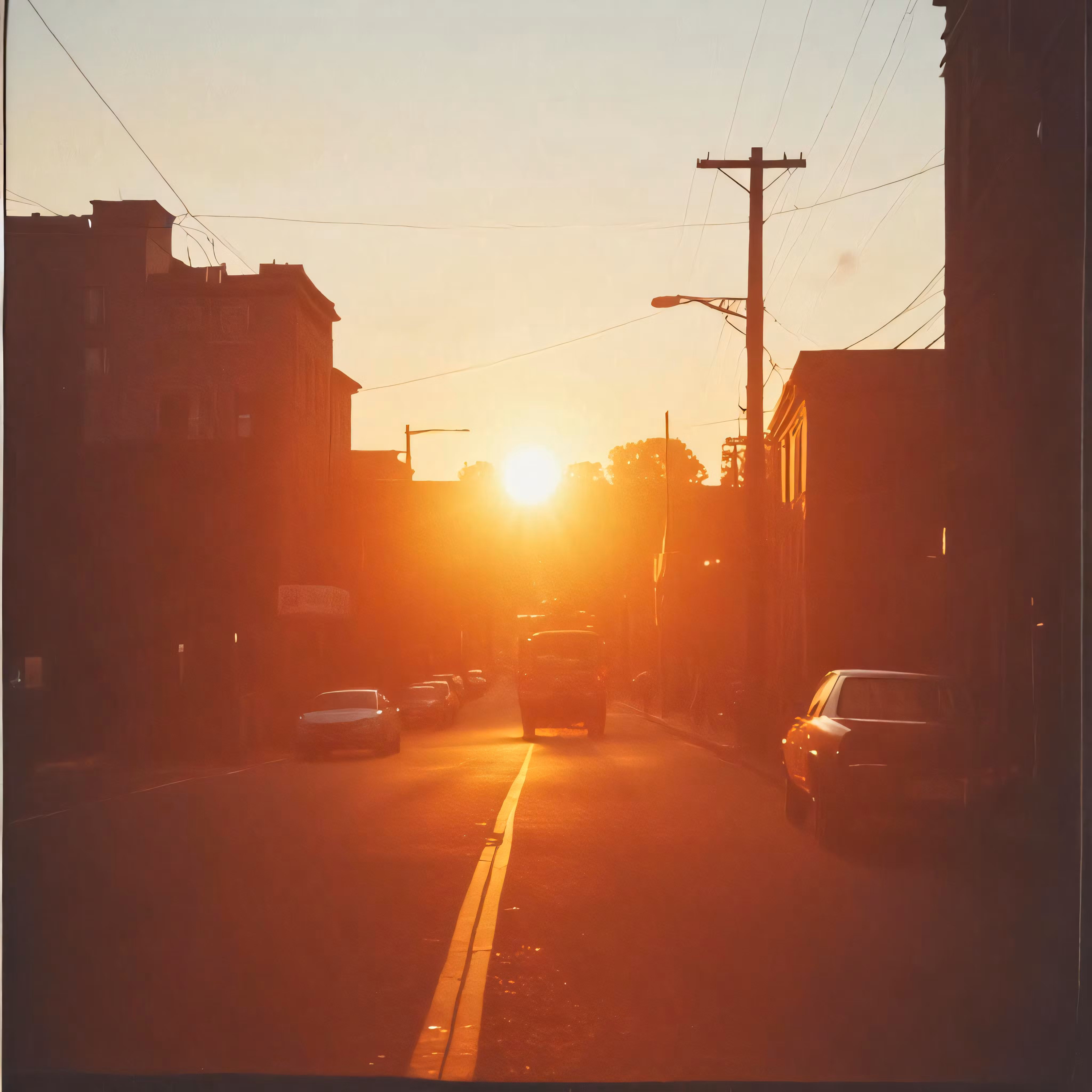 High resolution picture, free to use, the sun shining on the horizon in an otherwise empty neighborhood