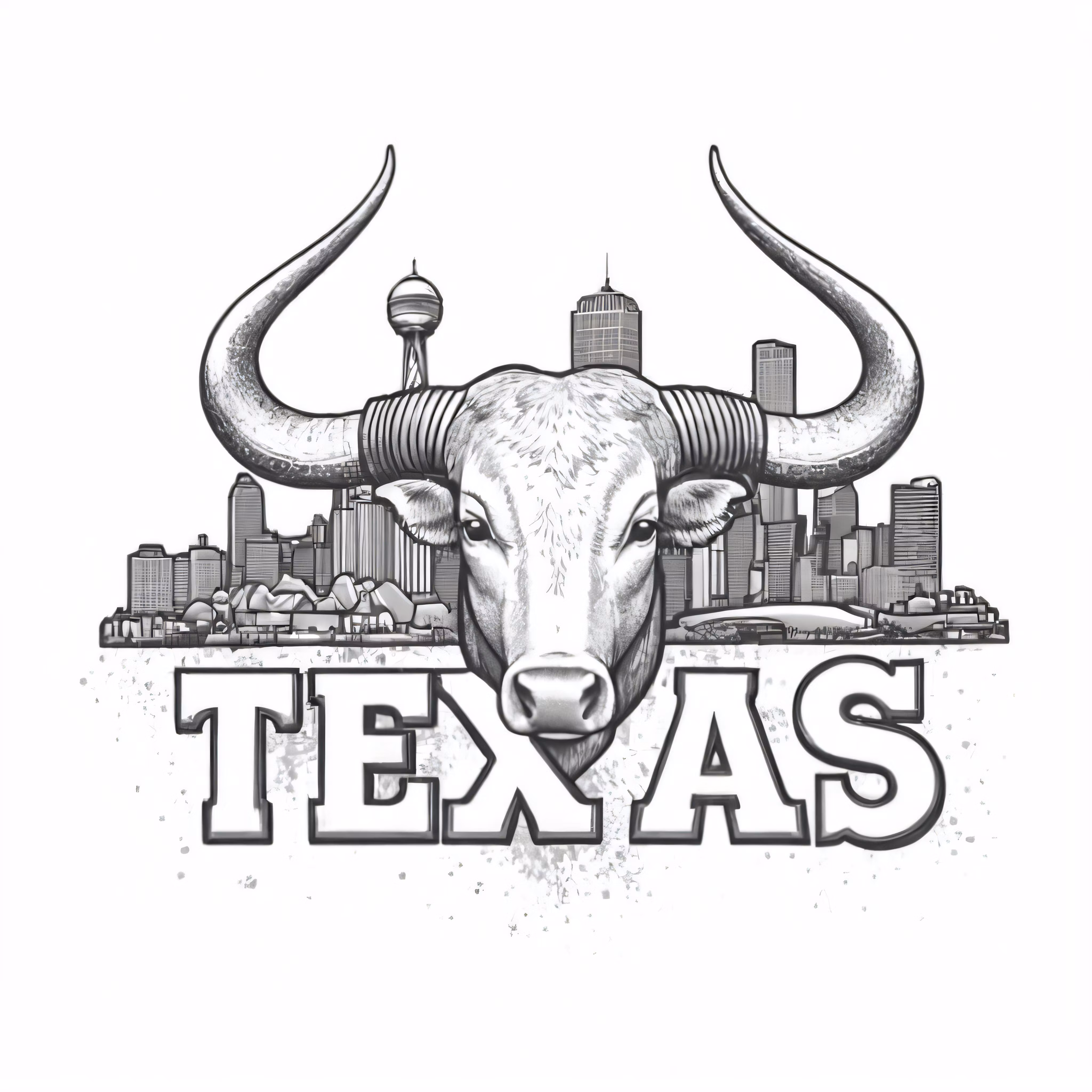 High resolution picture, free to use, the texas longhorn logo with the city skyline behind it