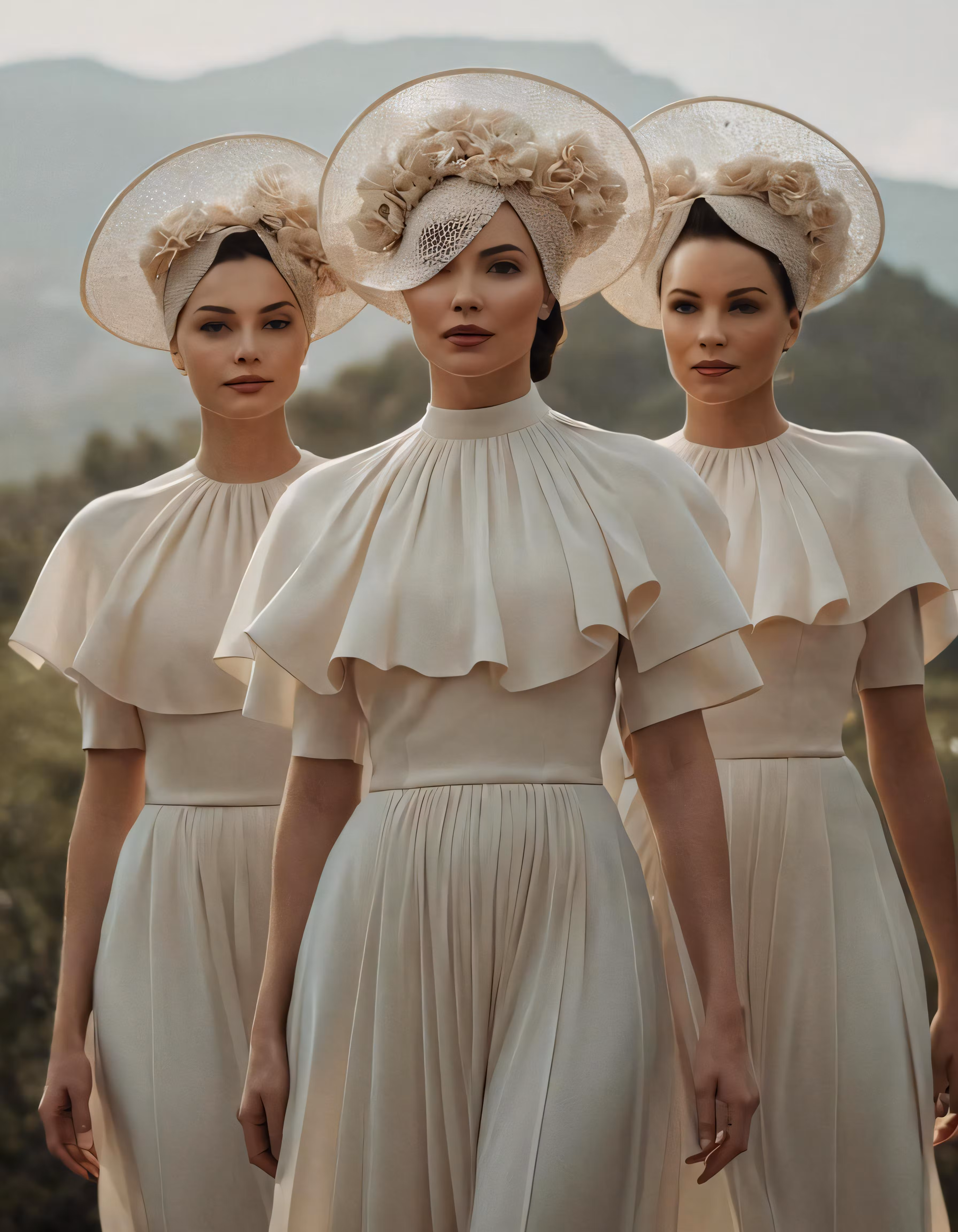 High resolution picture, free to use, the three ladies are all wearing matching hats