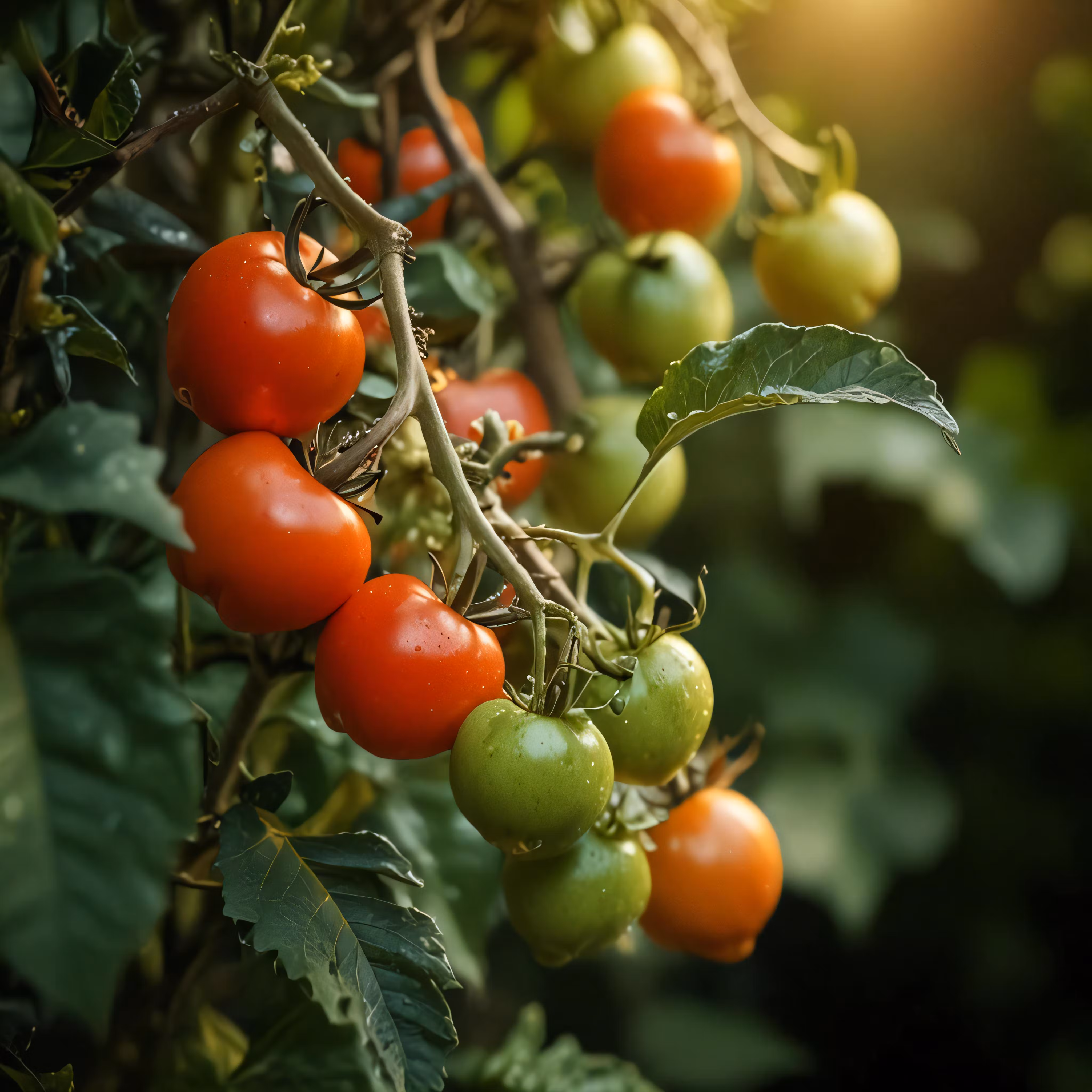 High resolution picture, free to use, the tomatoes are growing on the vine in the garden