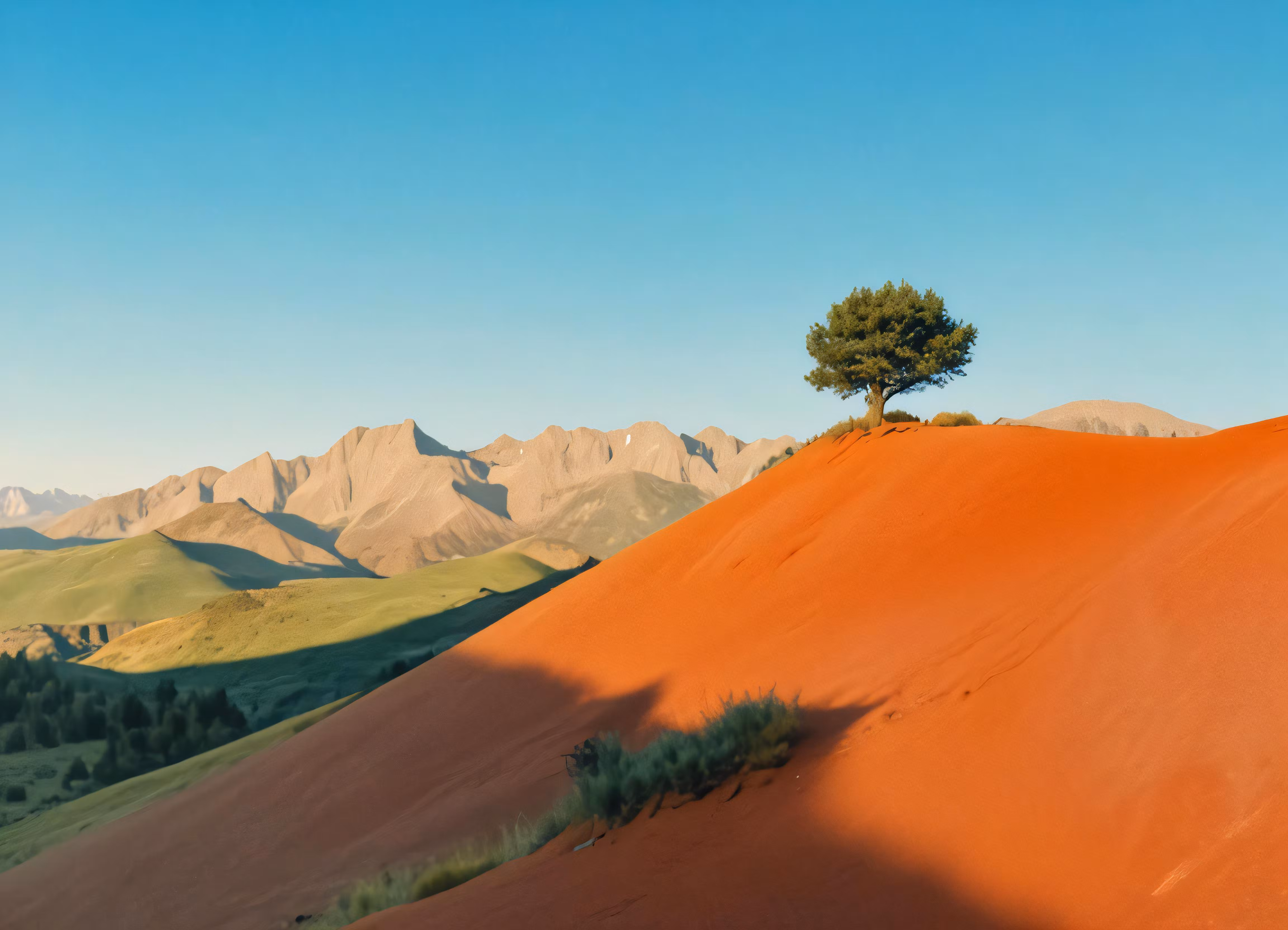 High resolution picture, free to use, the top of a hill has a lone tree on it