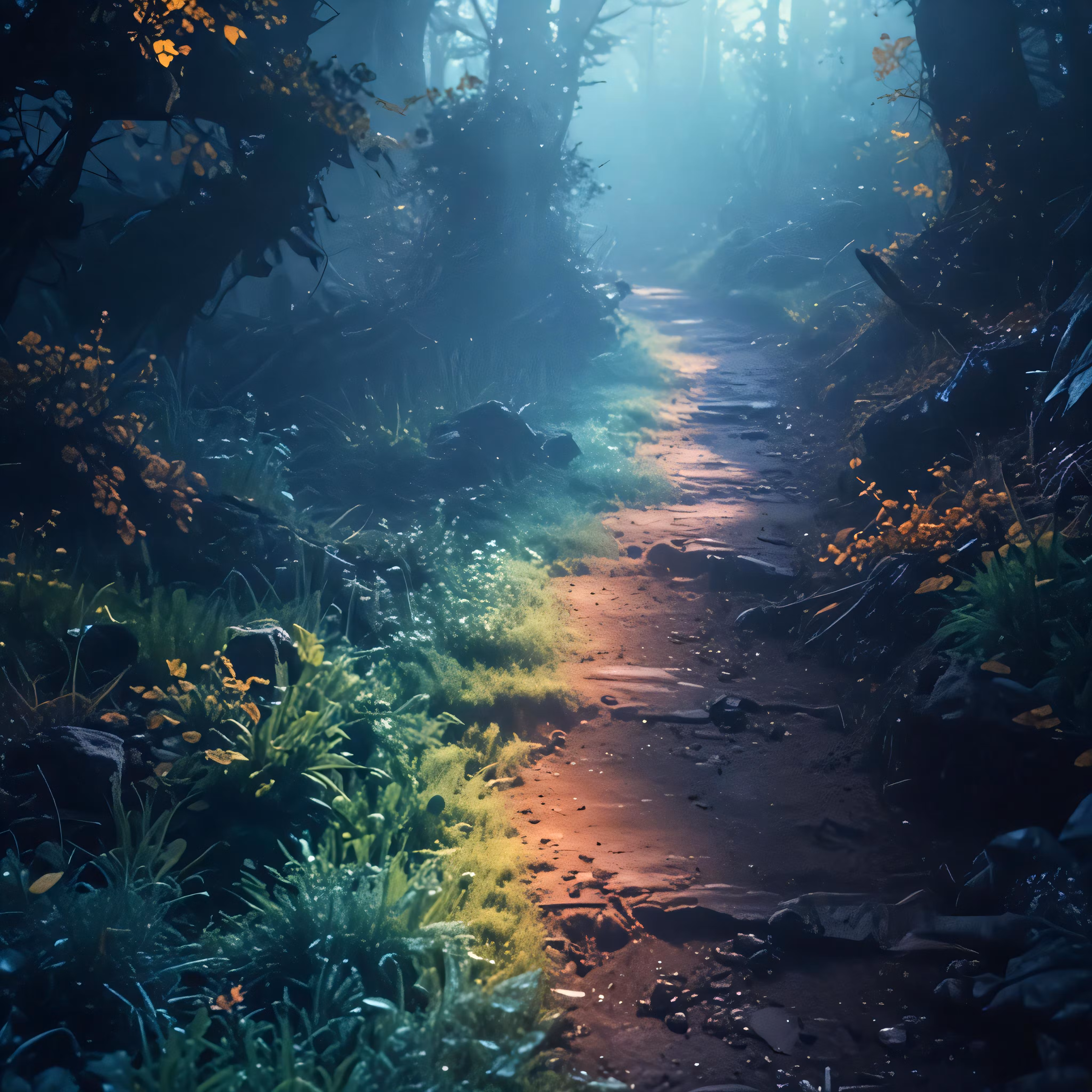 High resolution picture, free to use, the trail is surrounded by trees and fog