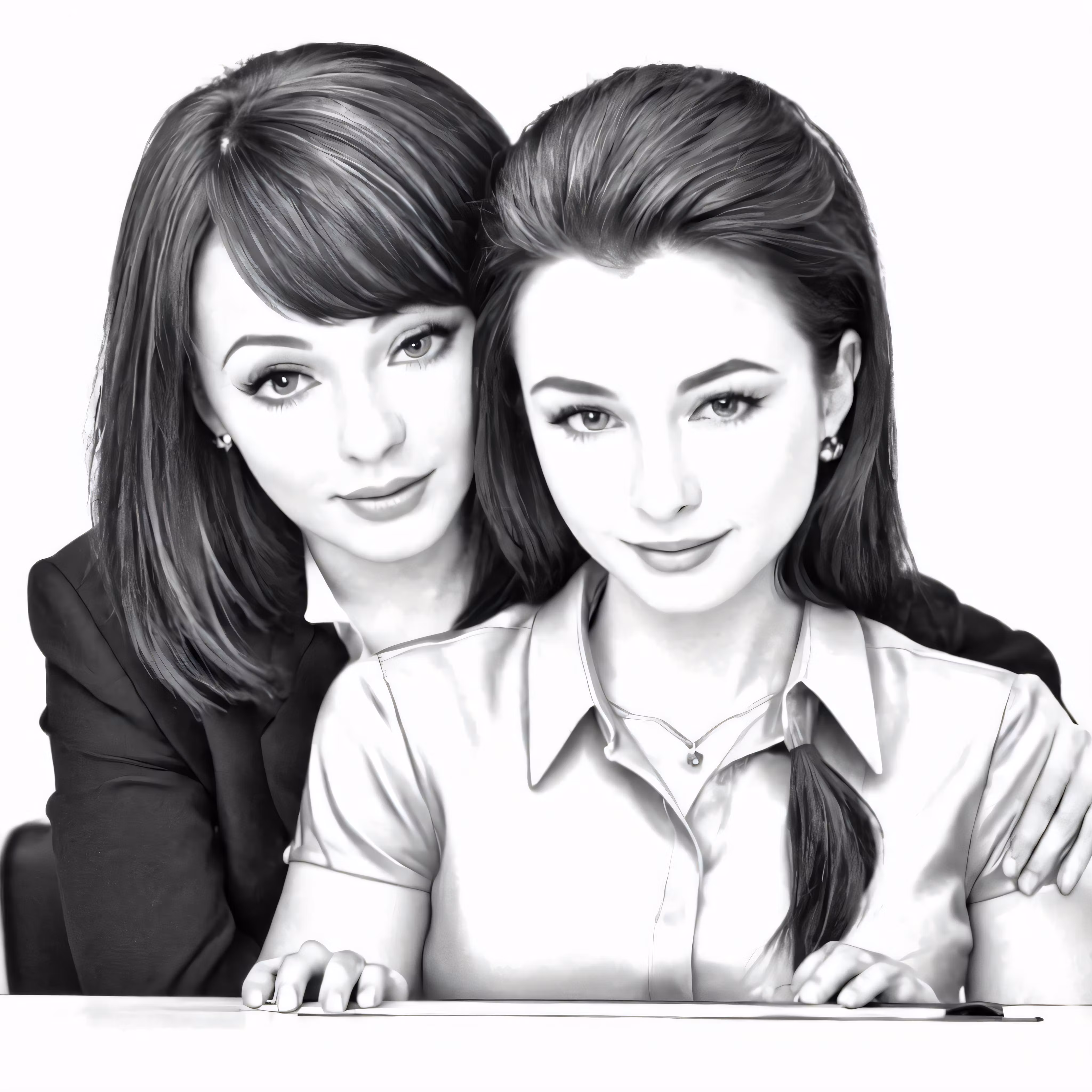 High resolution picture, free to use, the two women are shown in black and white