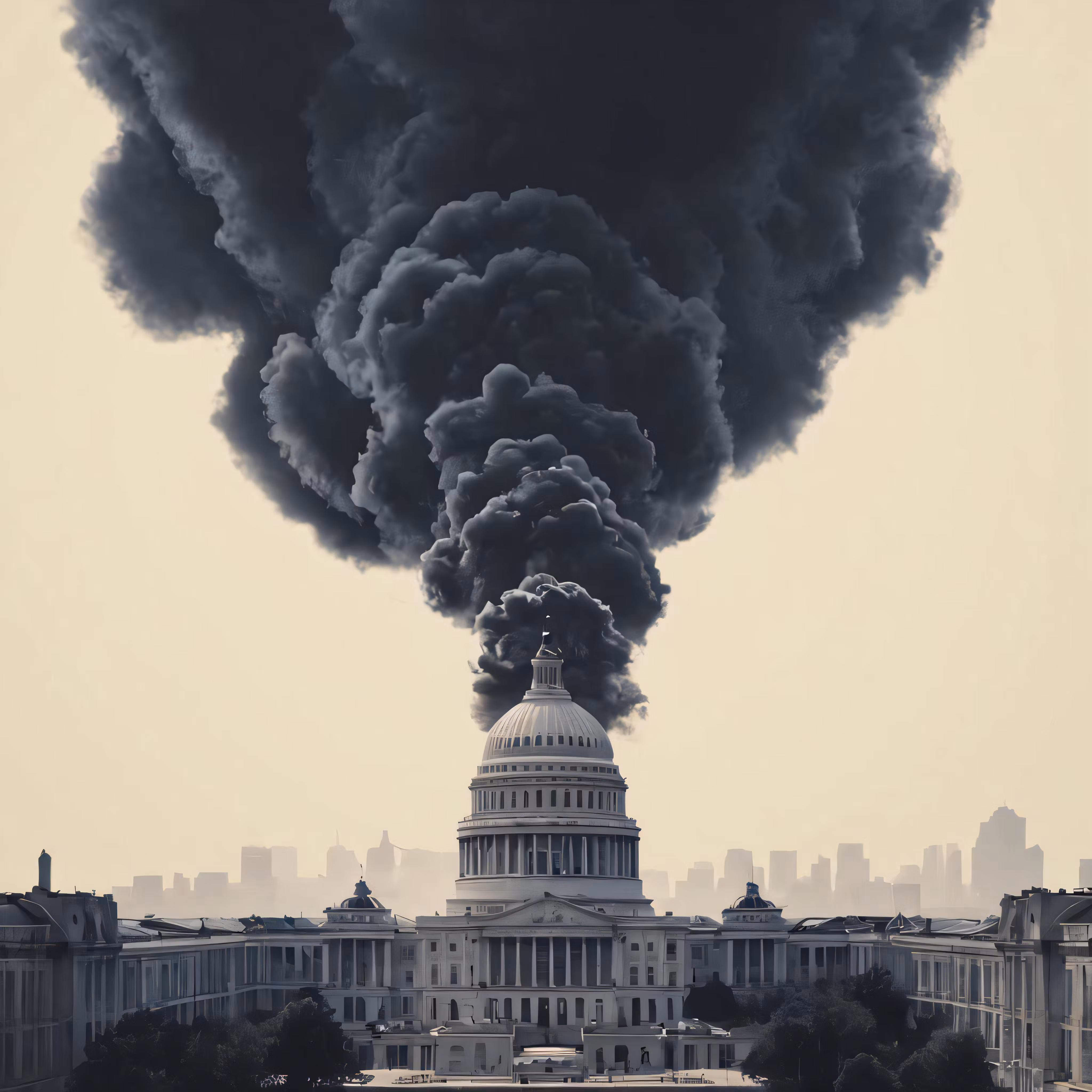 High resolution picture, free to use, the united states capital building with smoke billowing out