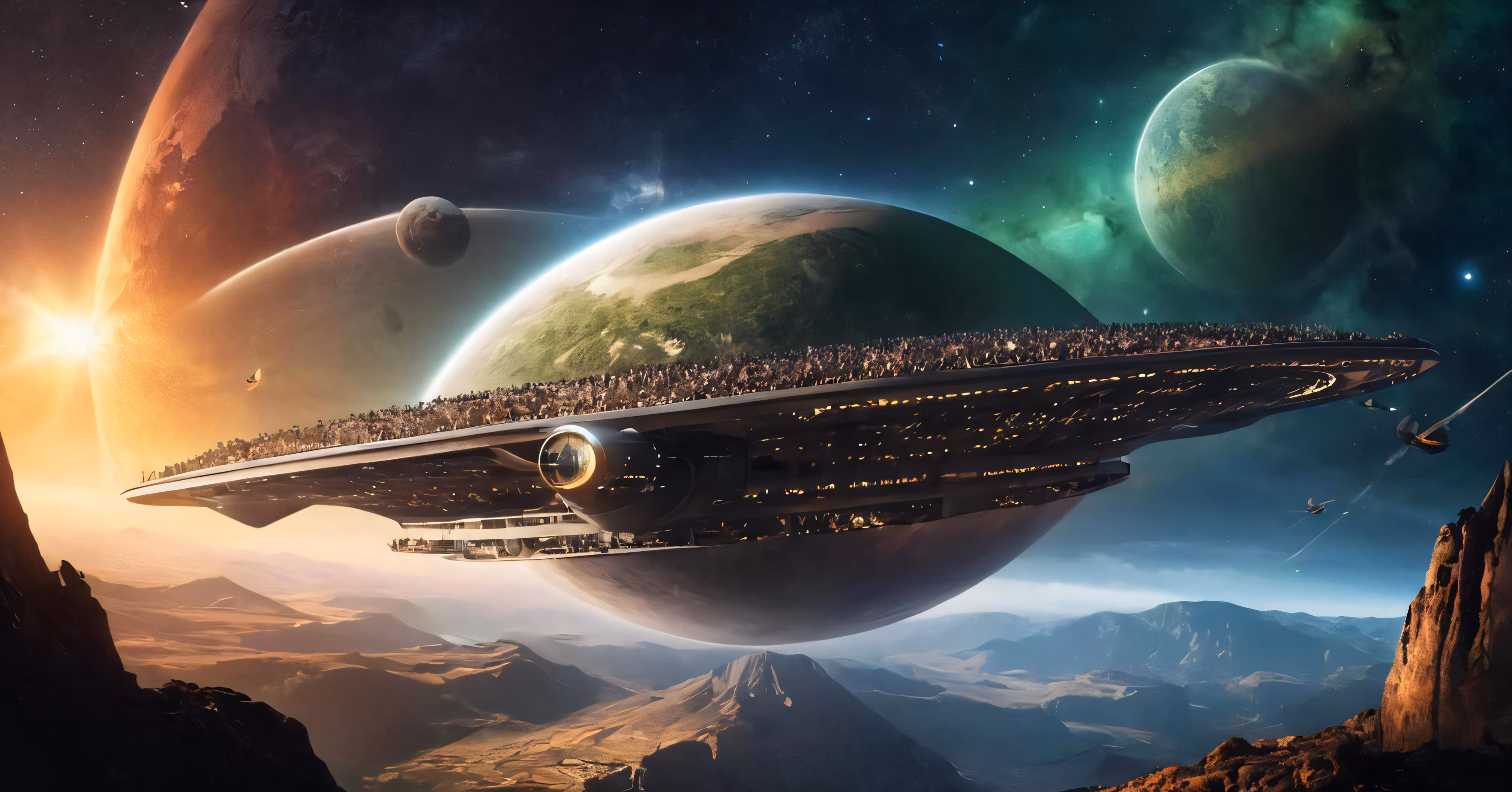 High resolution picture, free to use, the uss in outer space with the sun and planets around it