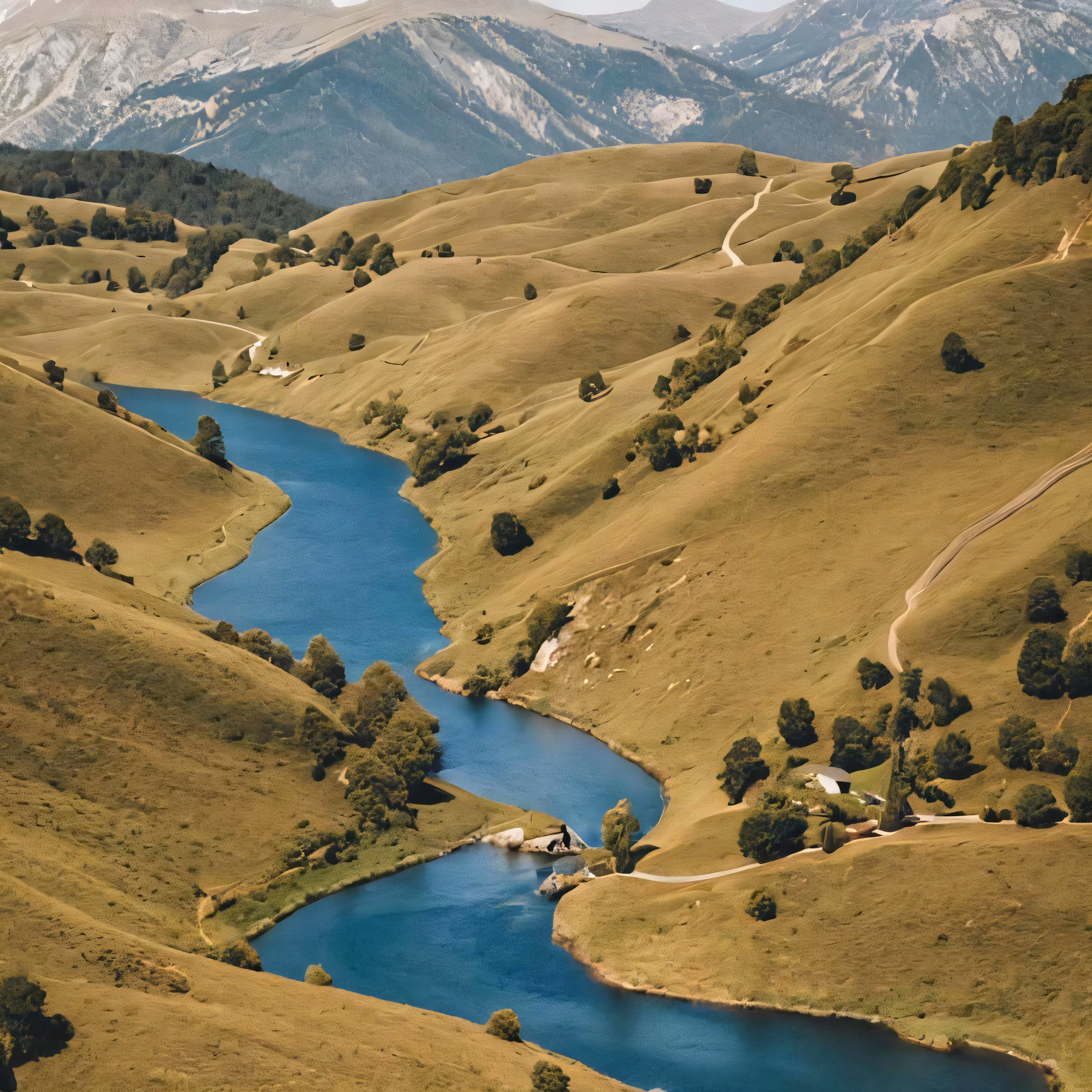 High resolution picture, free to use, the valley is surrounded by mountains and rivers