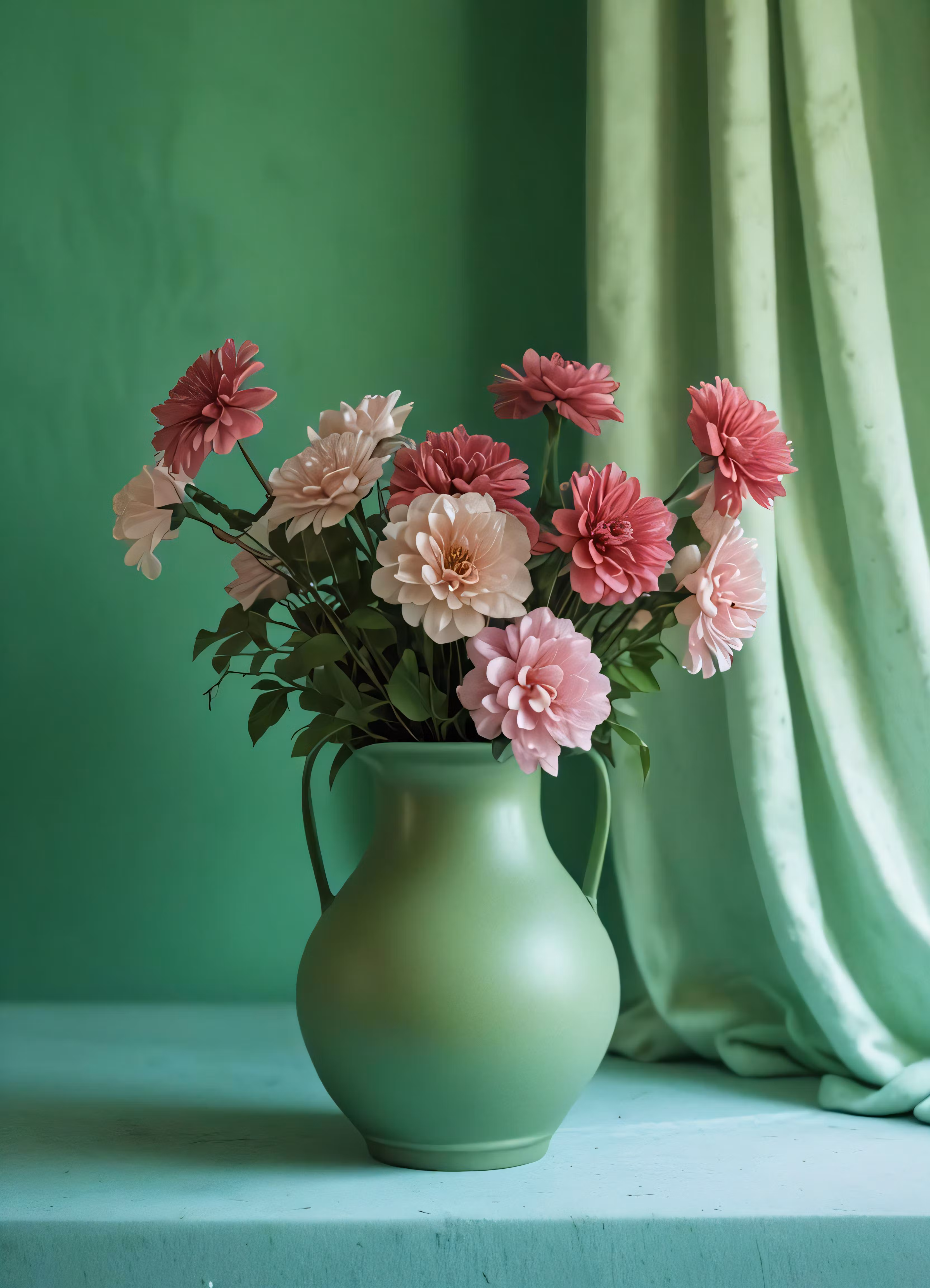 High resolution picture, free to use, the vase on the table has pink flowers in it