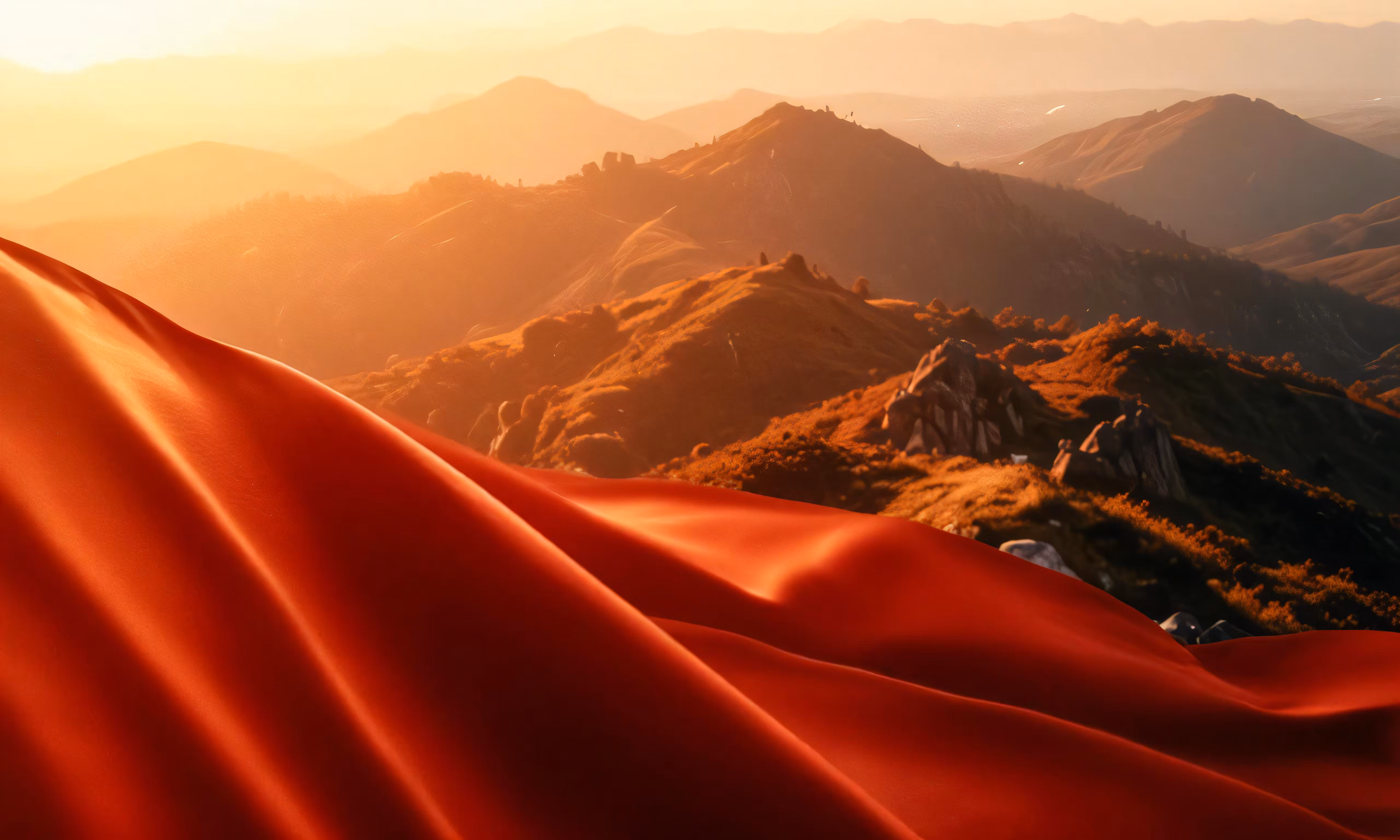High resolution picture, free to use, the view from top of a mountain shows a large red sheet