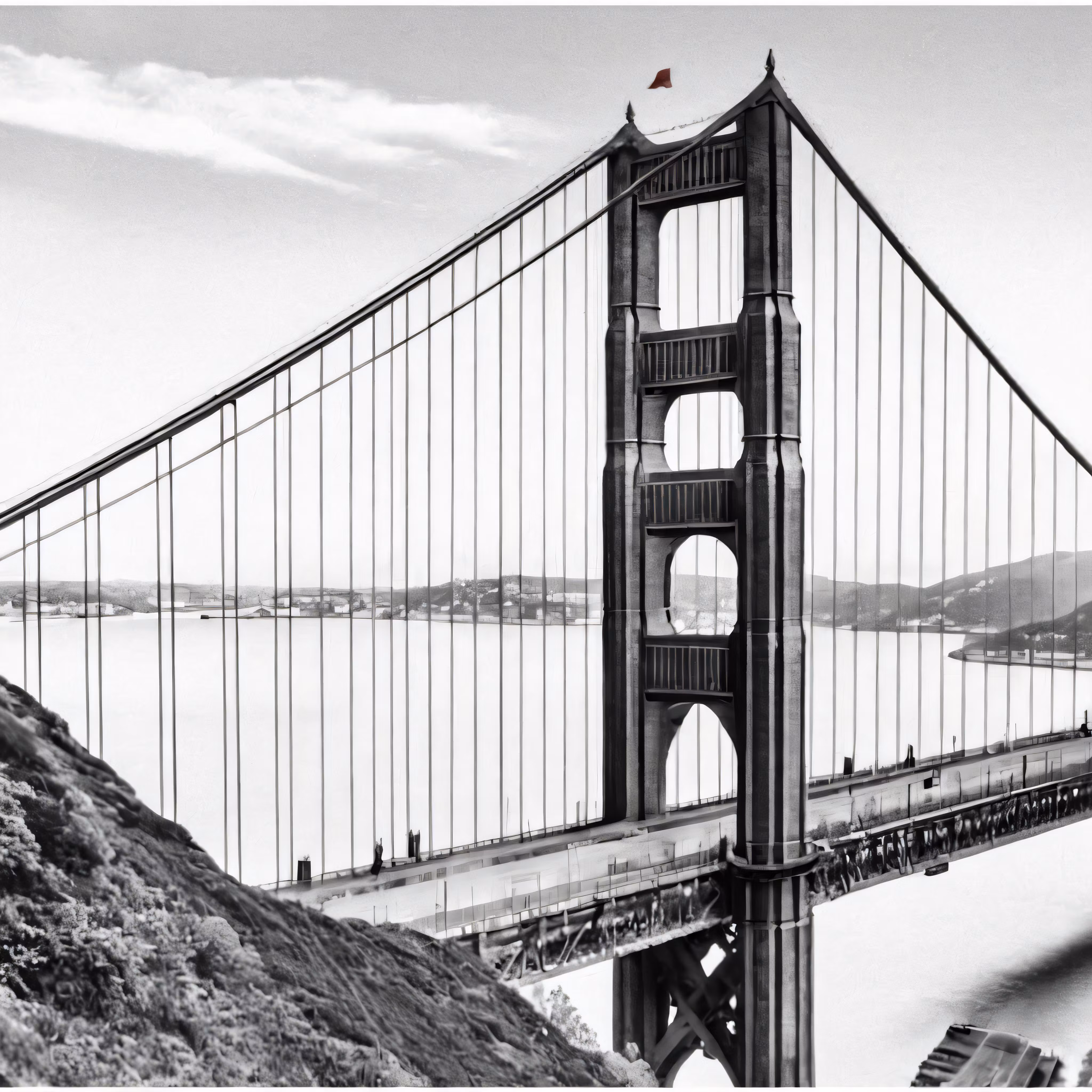 High resolution picture, free to use, the view of a bridge on top of a hill in black and white