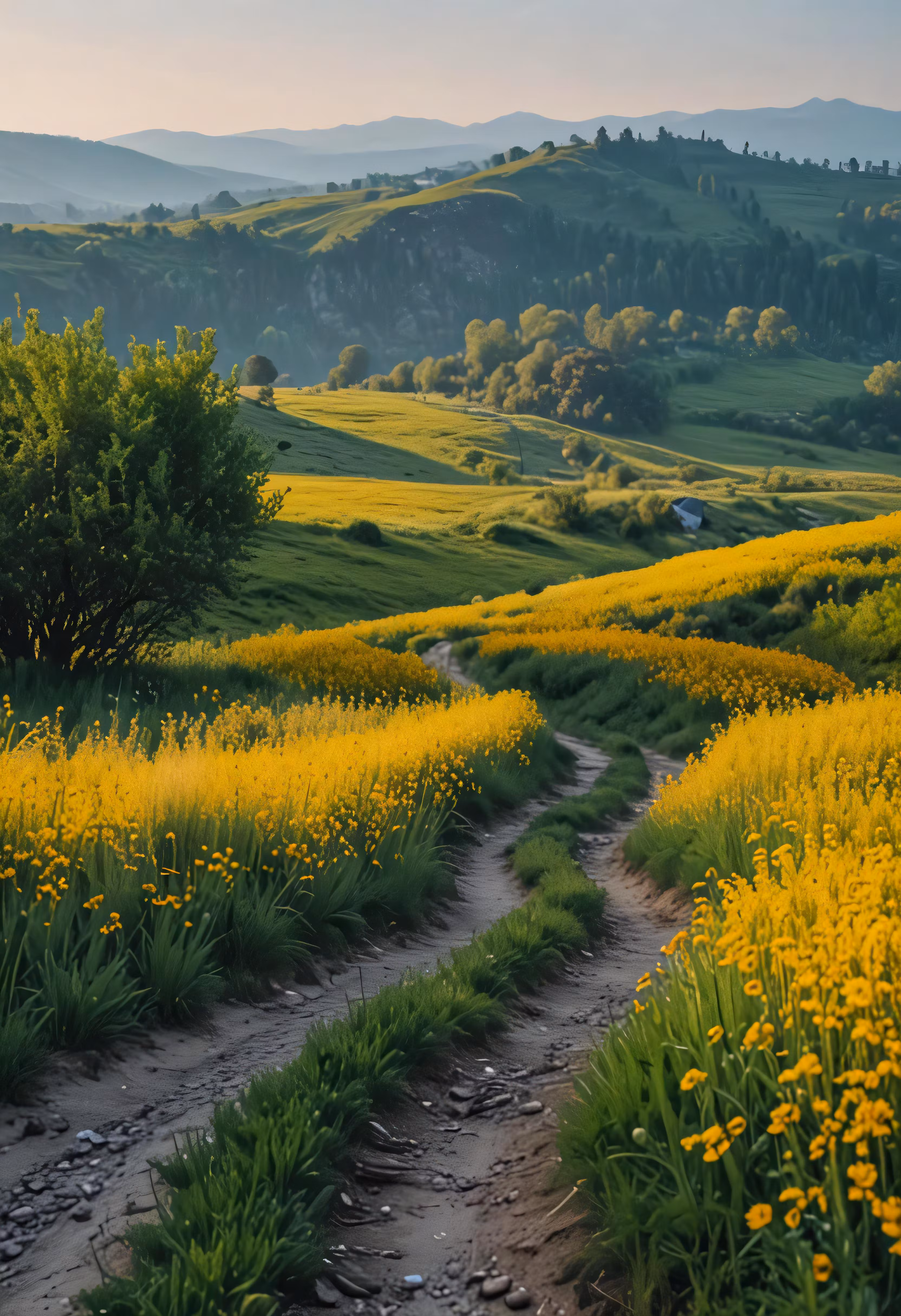 High resolution picture, free to use, the view of a field that is dotted with flowers