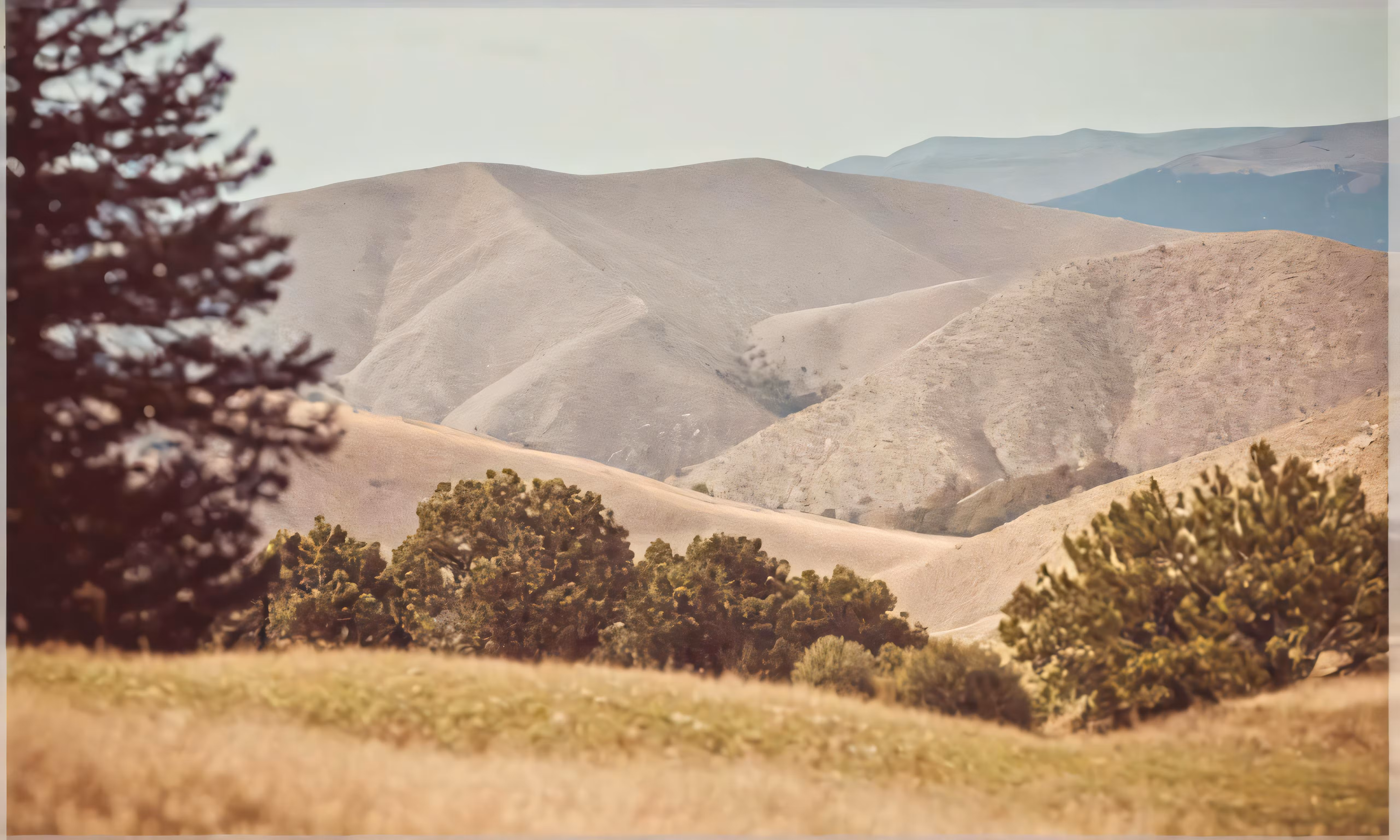 High resolution picture, free to use, the view of the mountains from behind some trees