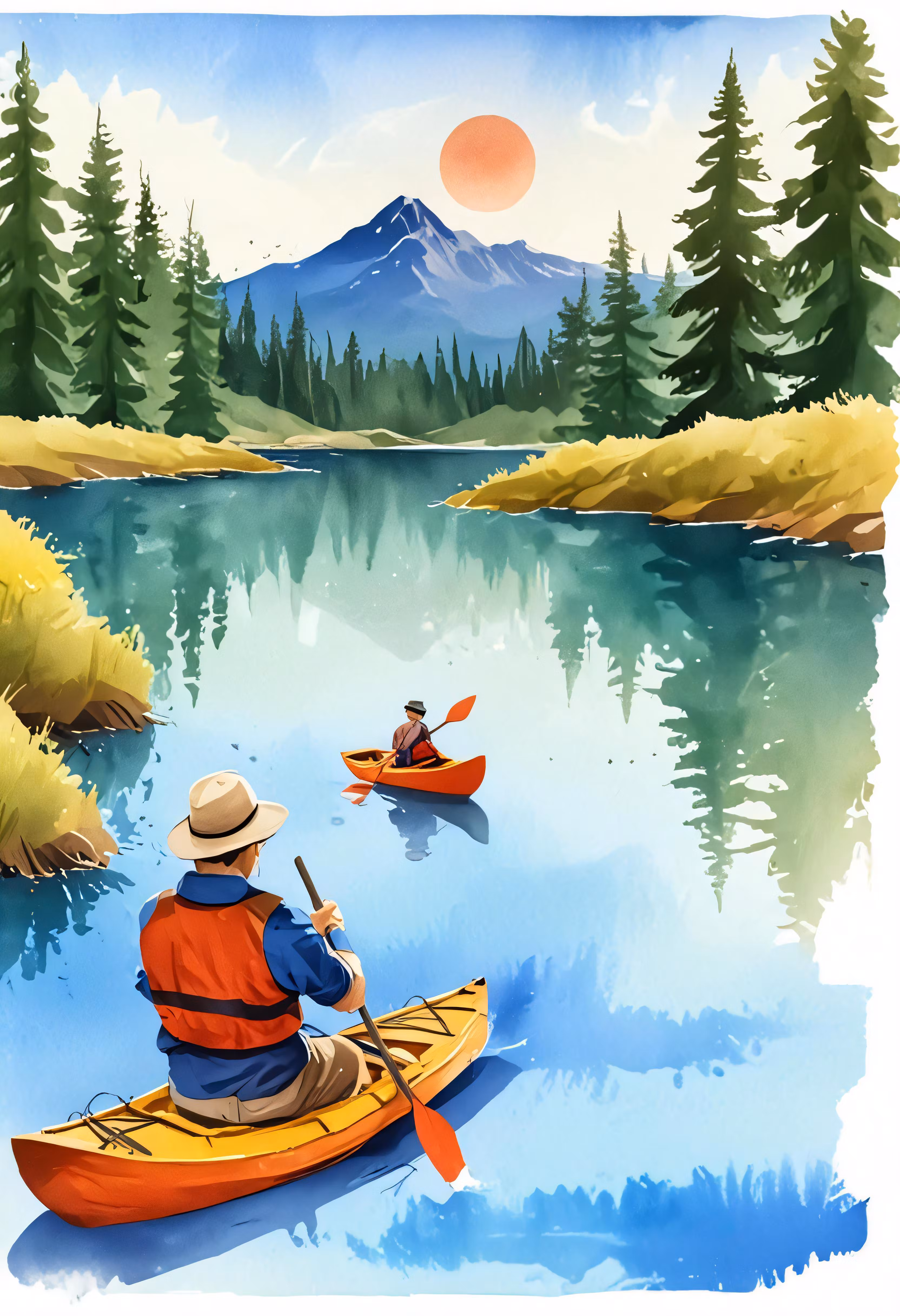 High resolution picture, free to use, the water is calm and the people are in canoes