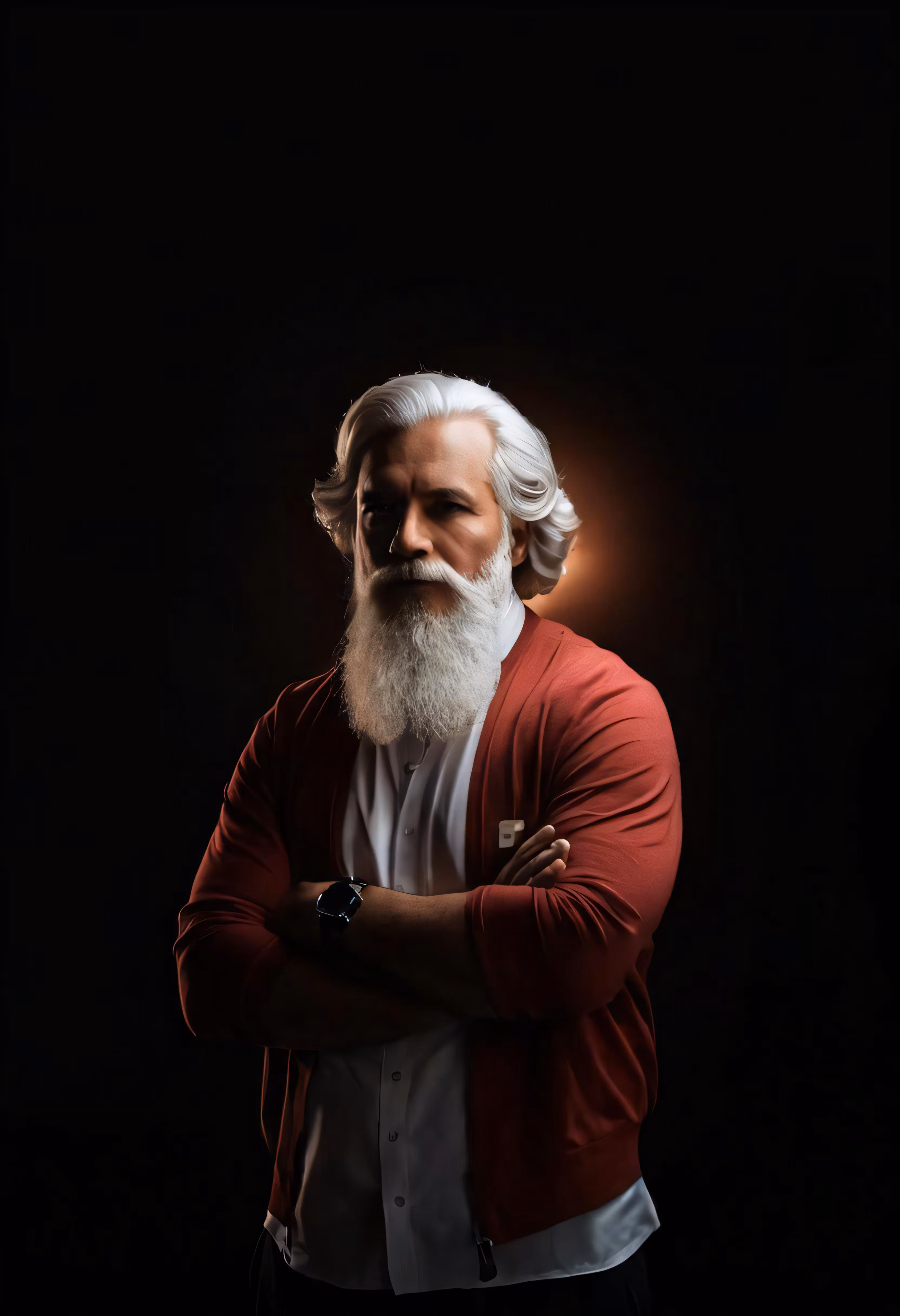High resolution picture, free to use, the white beard man has long white hair and a red sweater