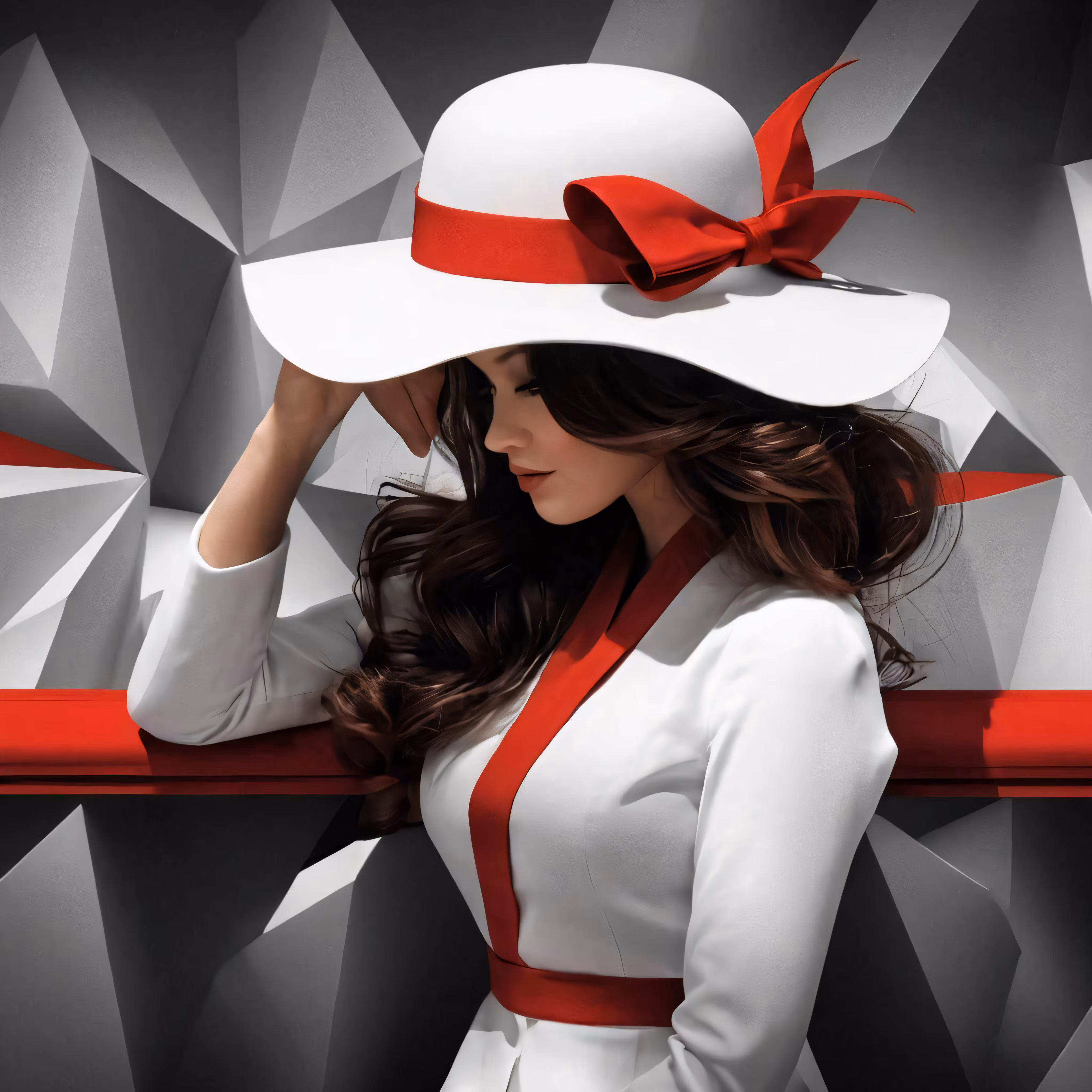 High resolution picture, free to use, the woman has a red ribbon around her neck
