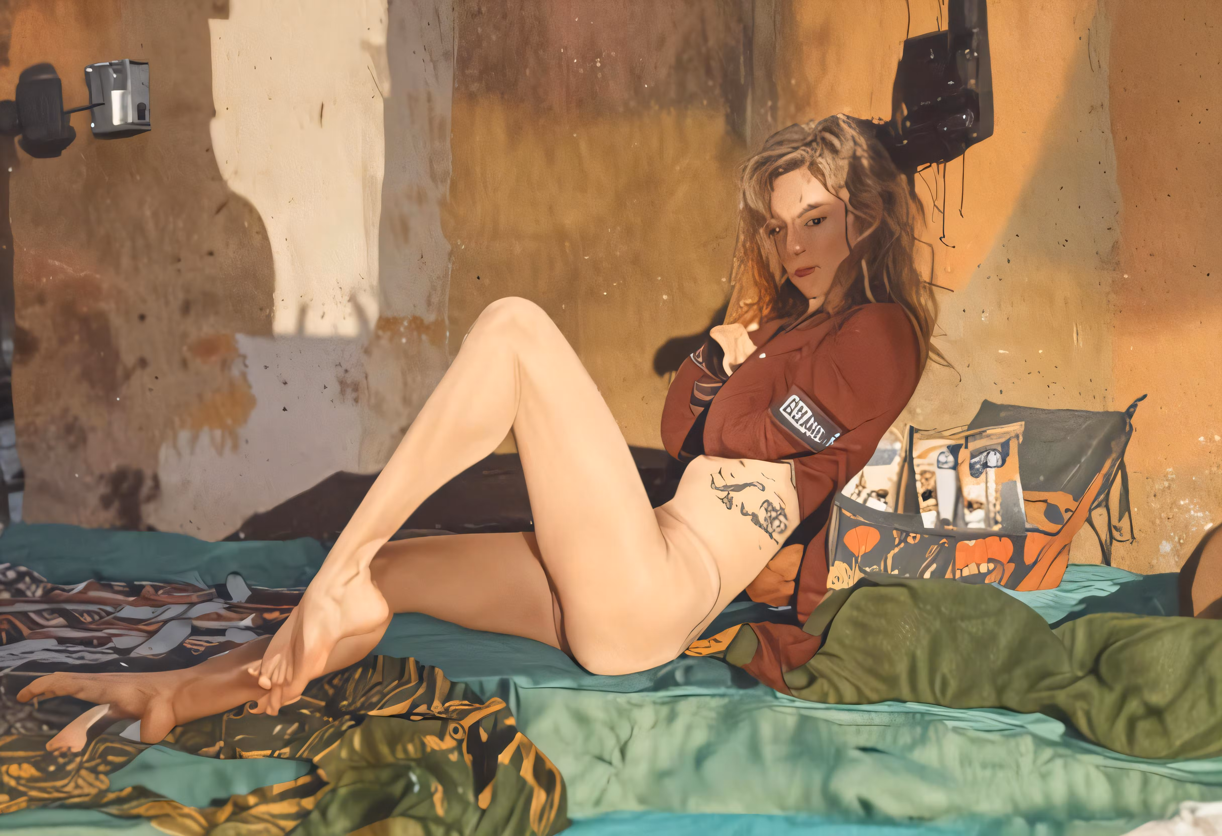 High resolution picture, free to use, the woman has very short legs and no shirt on