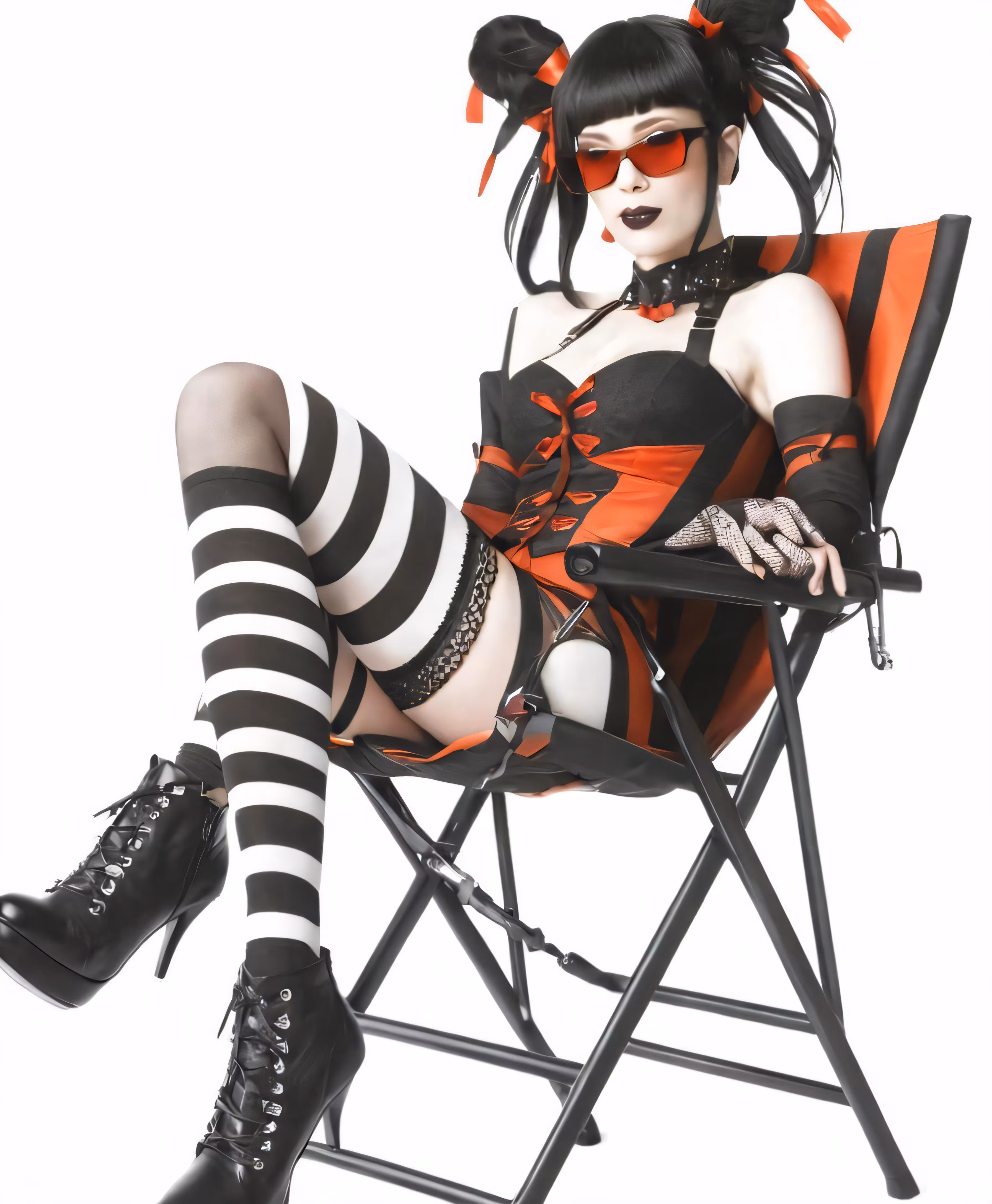 High resolution picture, free to use, the woman in black and white is wearing her black and white stripped stockings