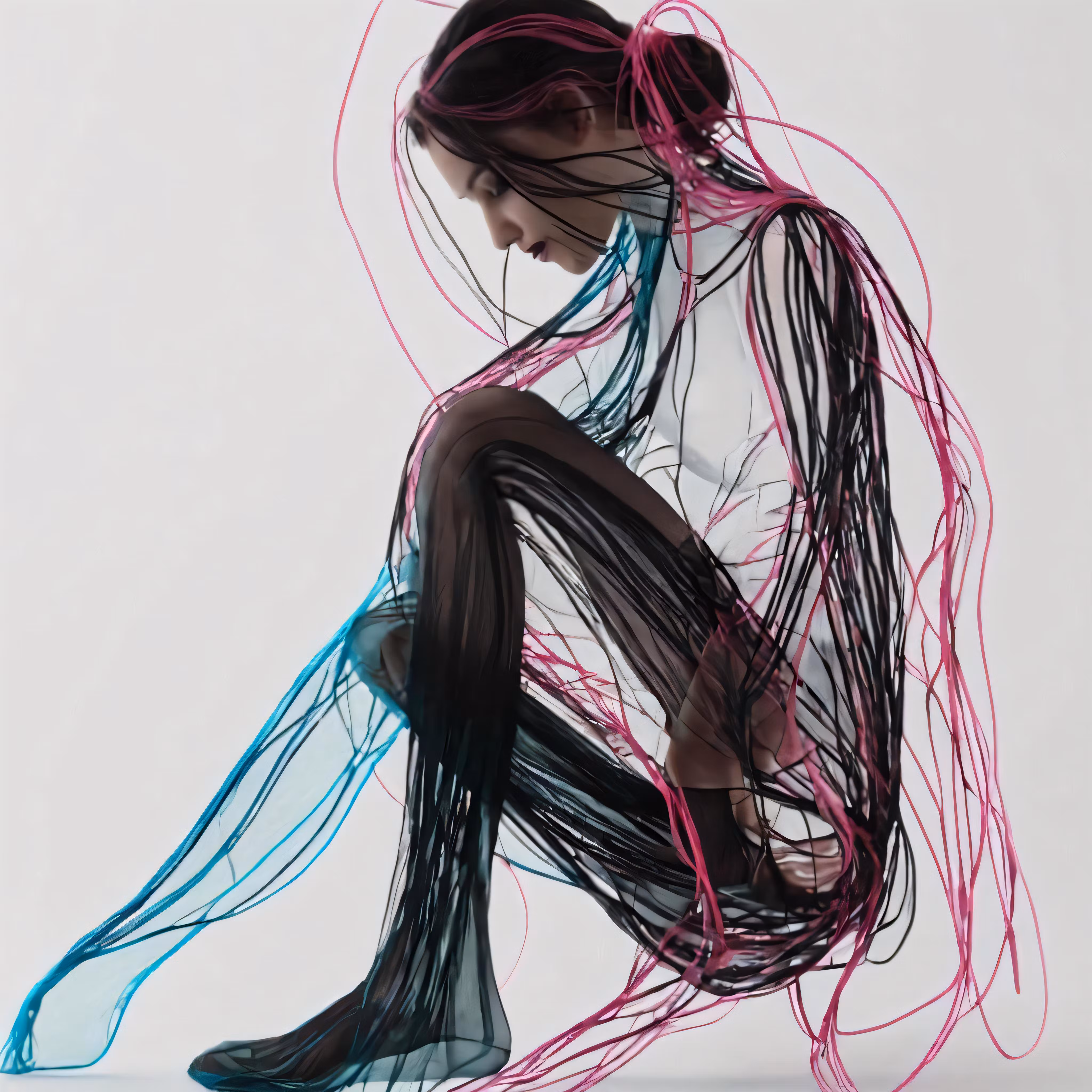 High resolution picture, free to use, the woman in the image has a veil of purple and blue lines