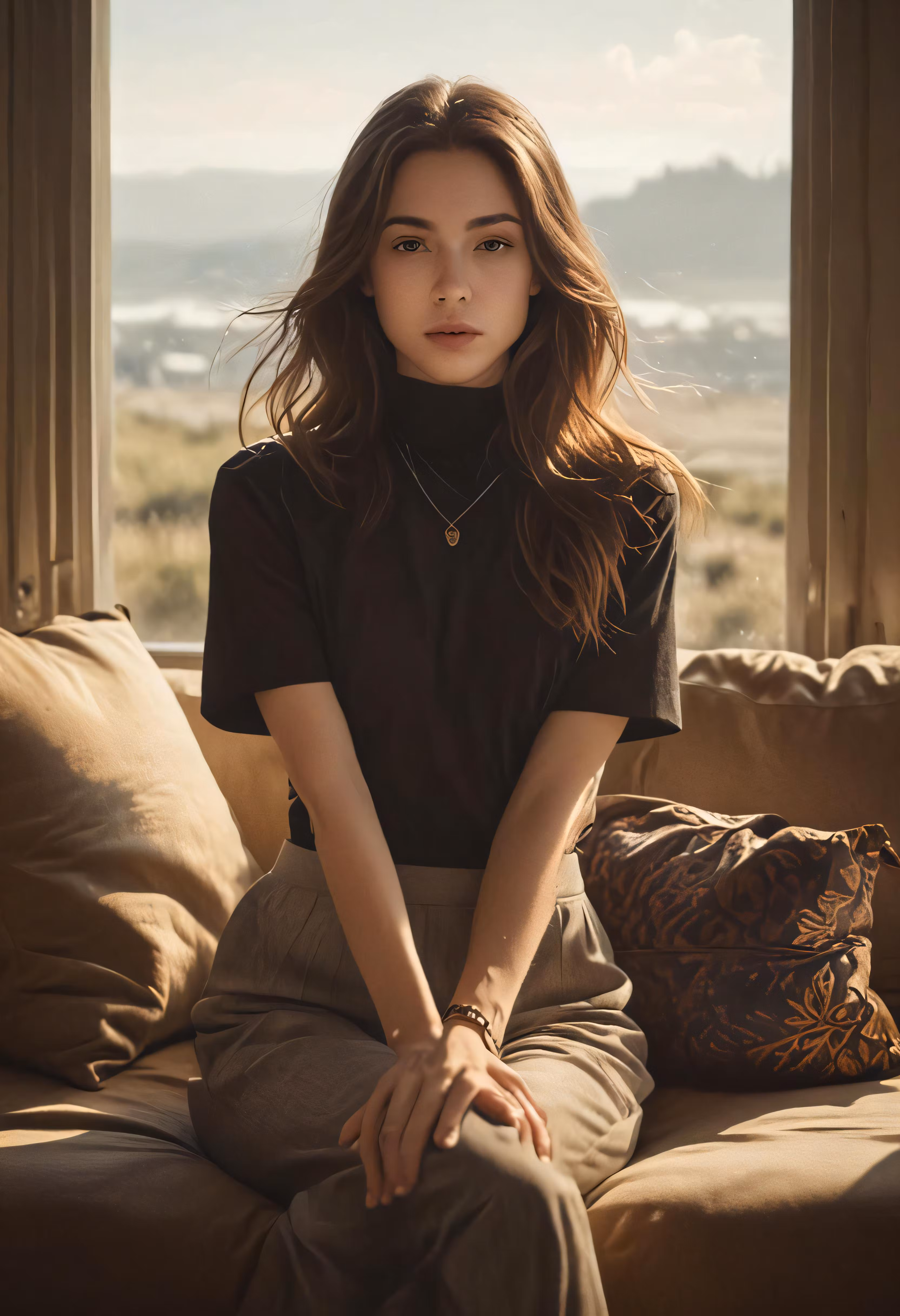High resolution picture, free to use, the woman in the photo is looking out the window