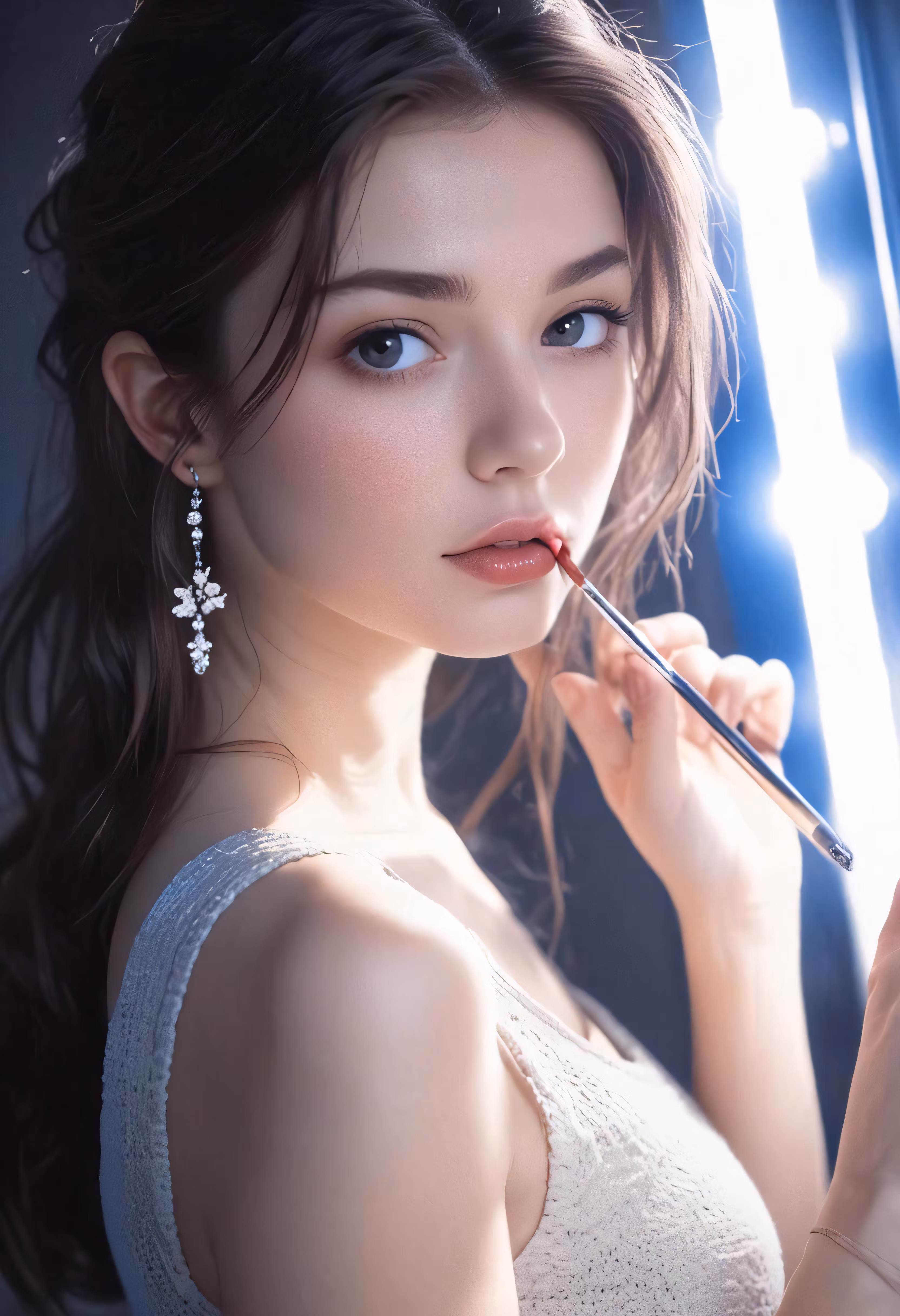 High resolution picture, free to use, the woman is applying her make   up on her face