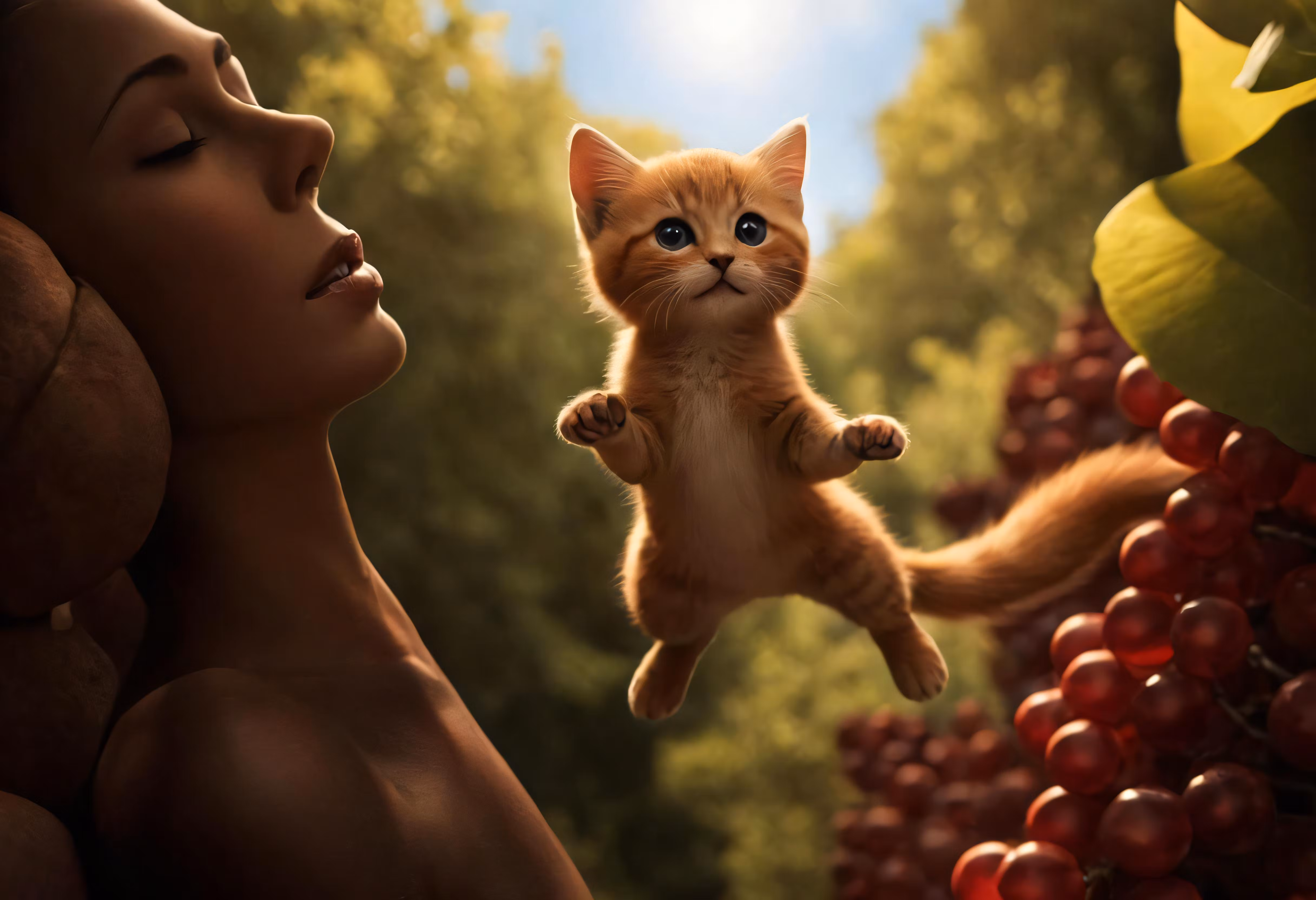 High resolution picture, free to use, the woman is holding her cat up in the air