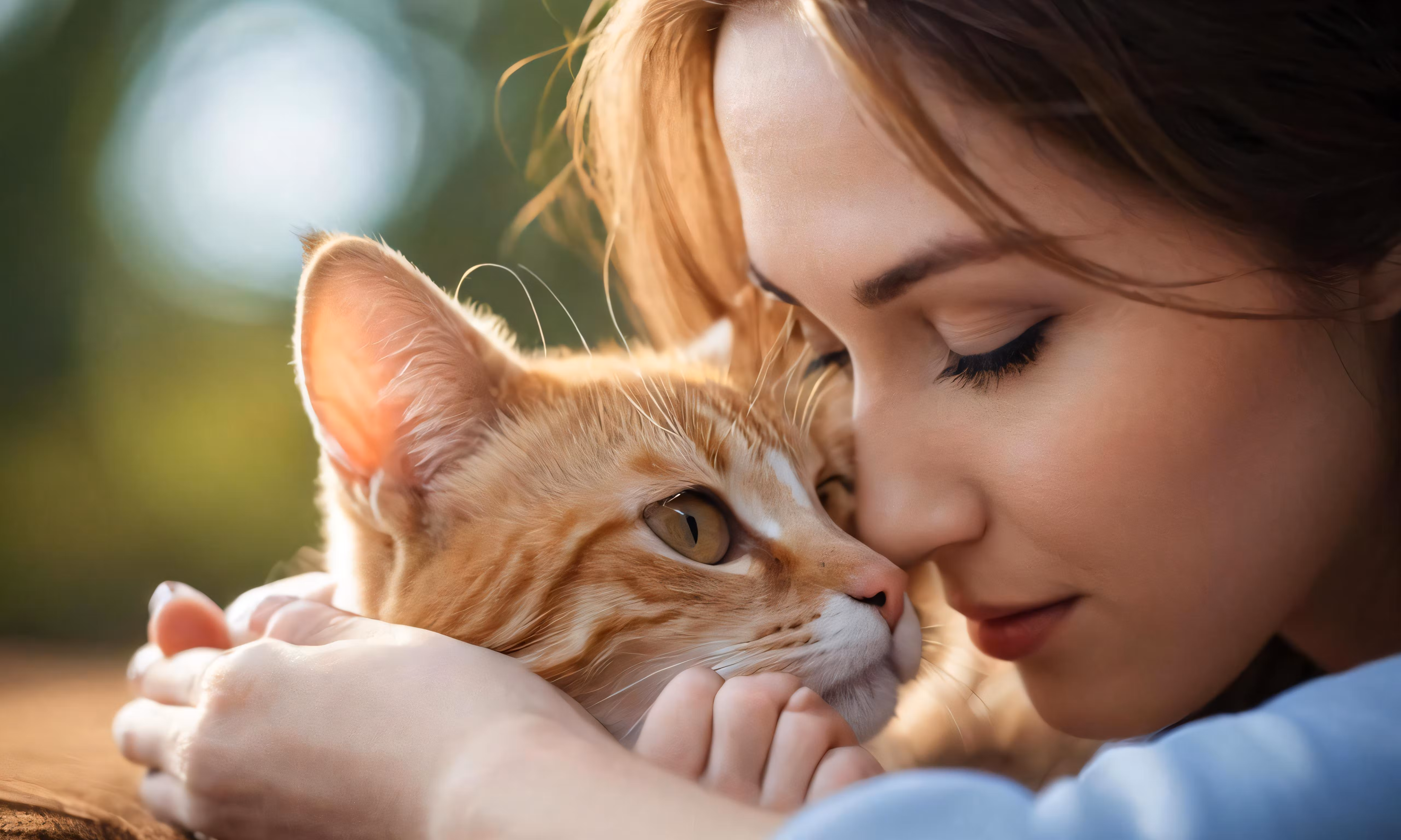 High resolution picture, free to use, the woman is holding her cat up to her face