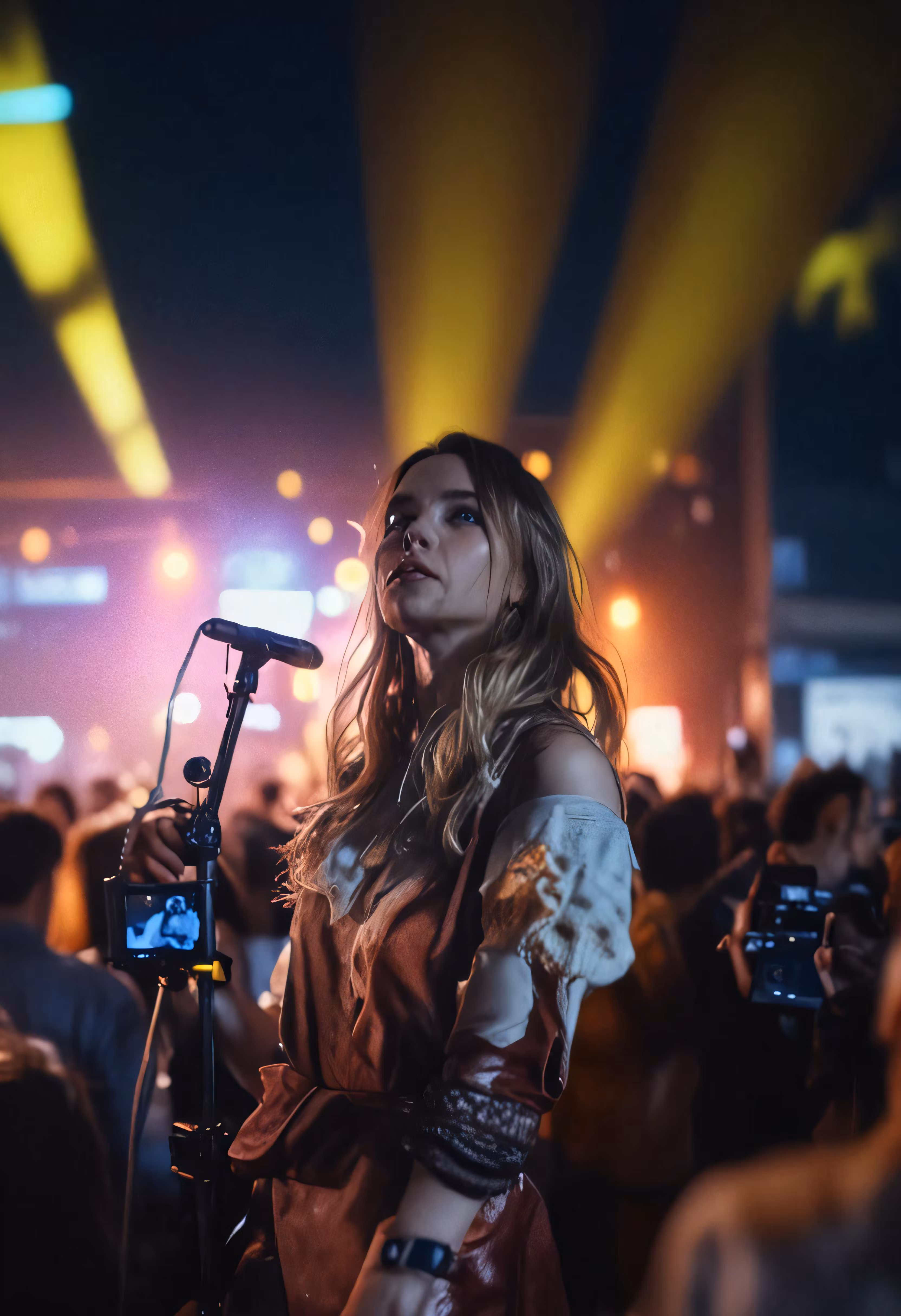 High resolution picture, free to use, the woman is in the crowd with her microphone
