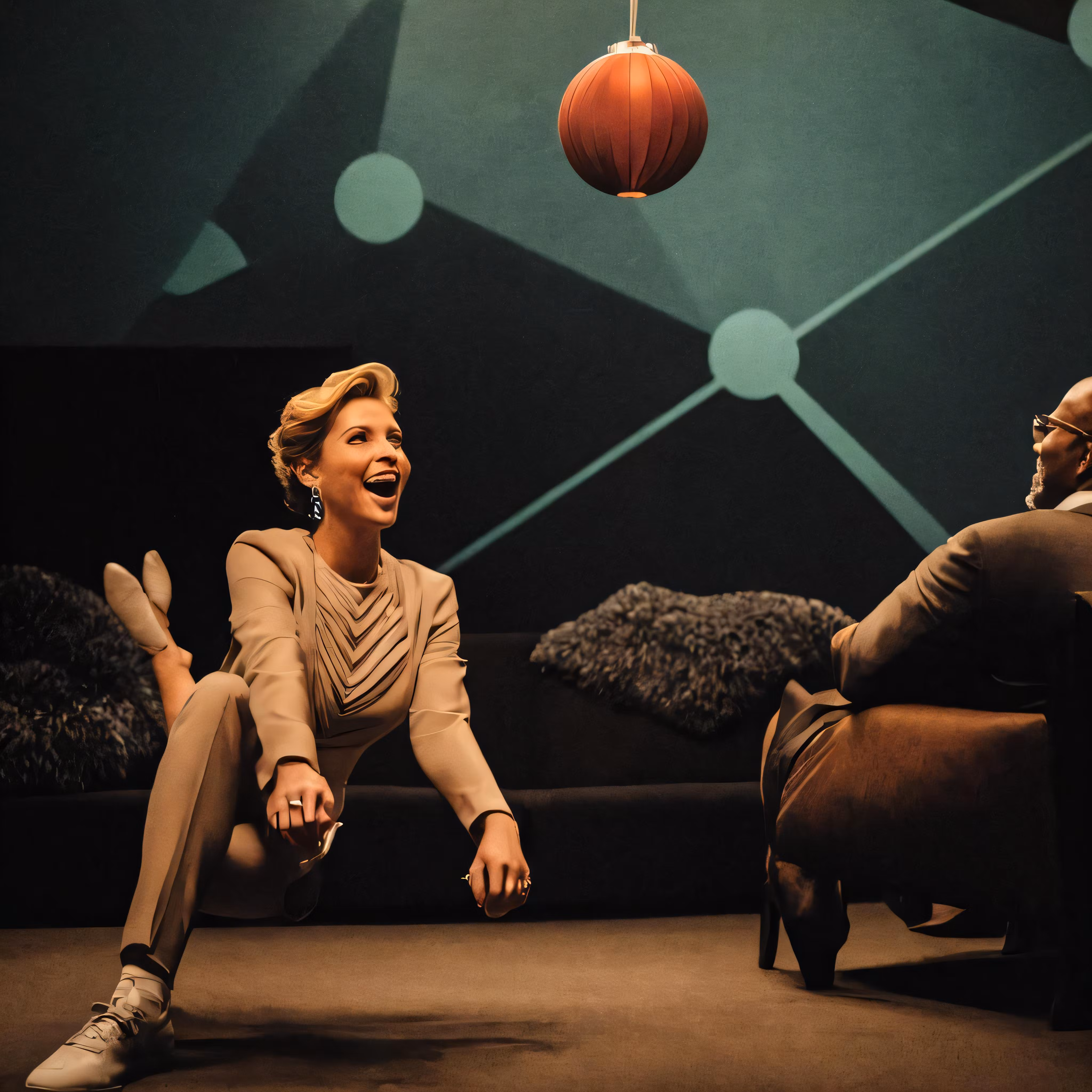 High resolution picture, free to use, the woman is kneeling on a floor near a man