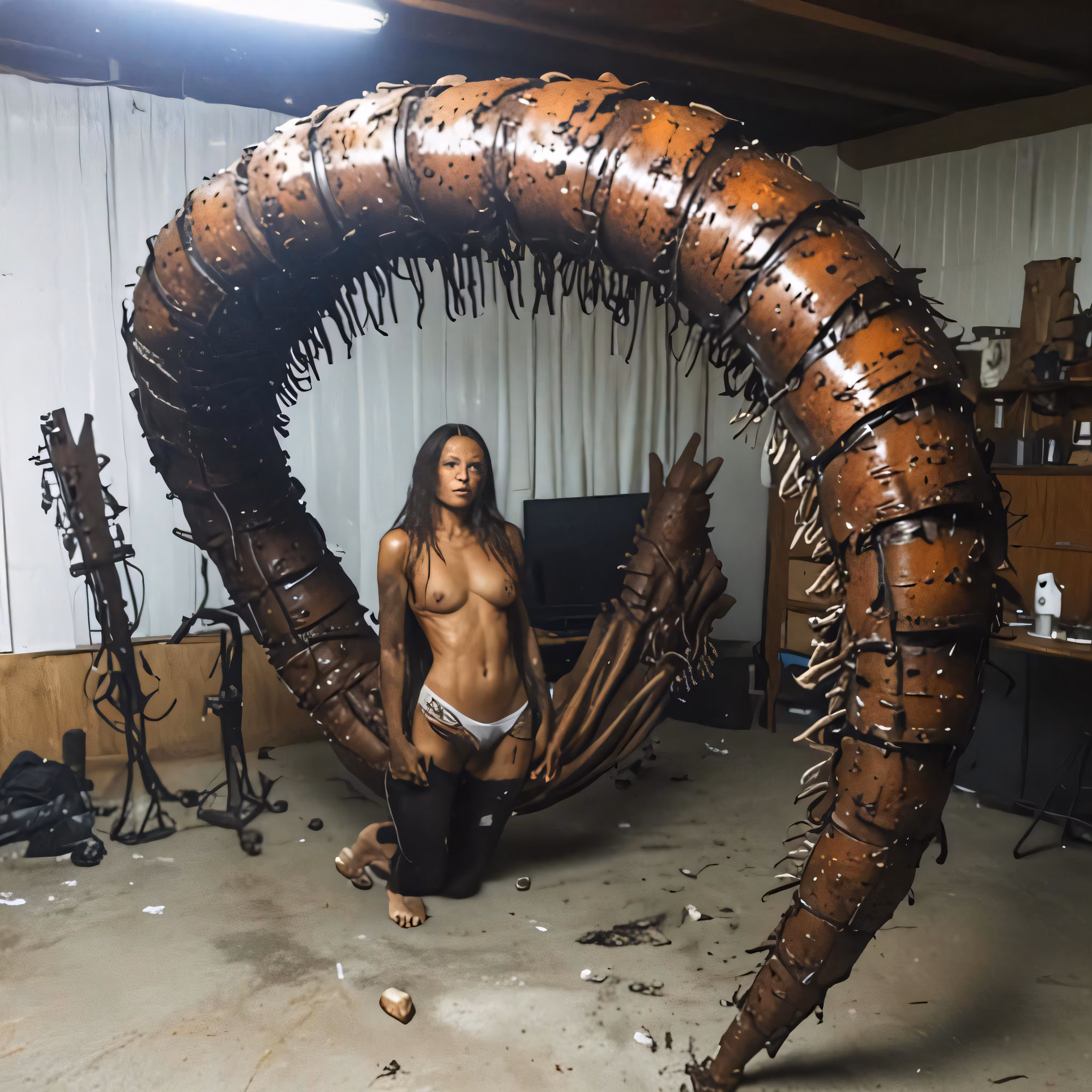 High resolution picture, free to use, the woman is posed in a huge piece of art