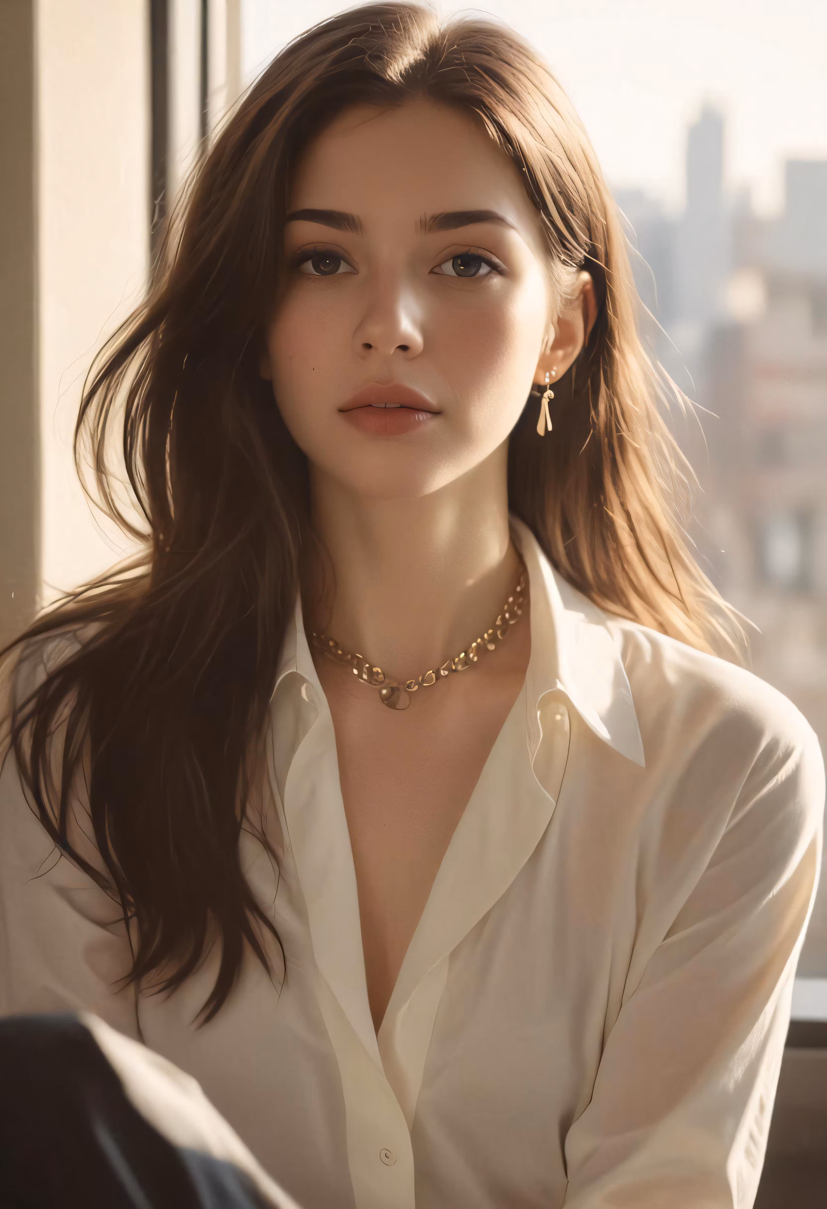 High resolution picture, free to use, the woman is posing for a photo in front of the window