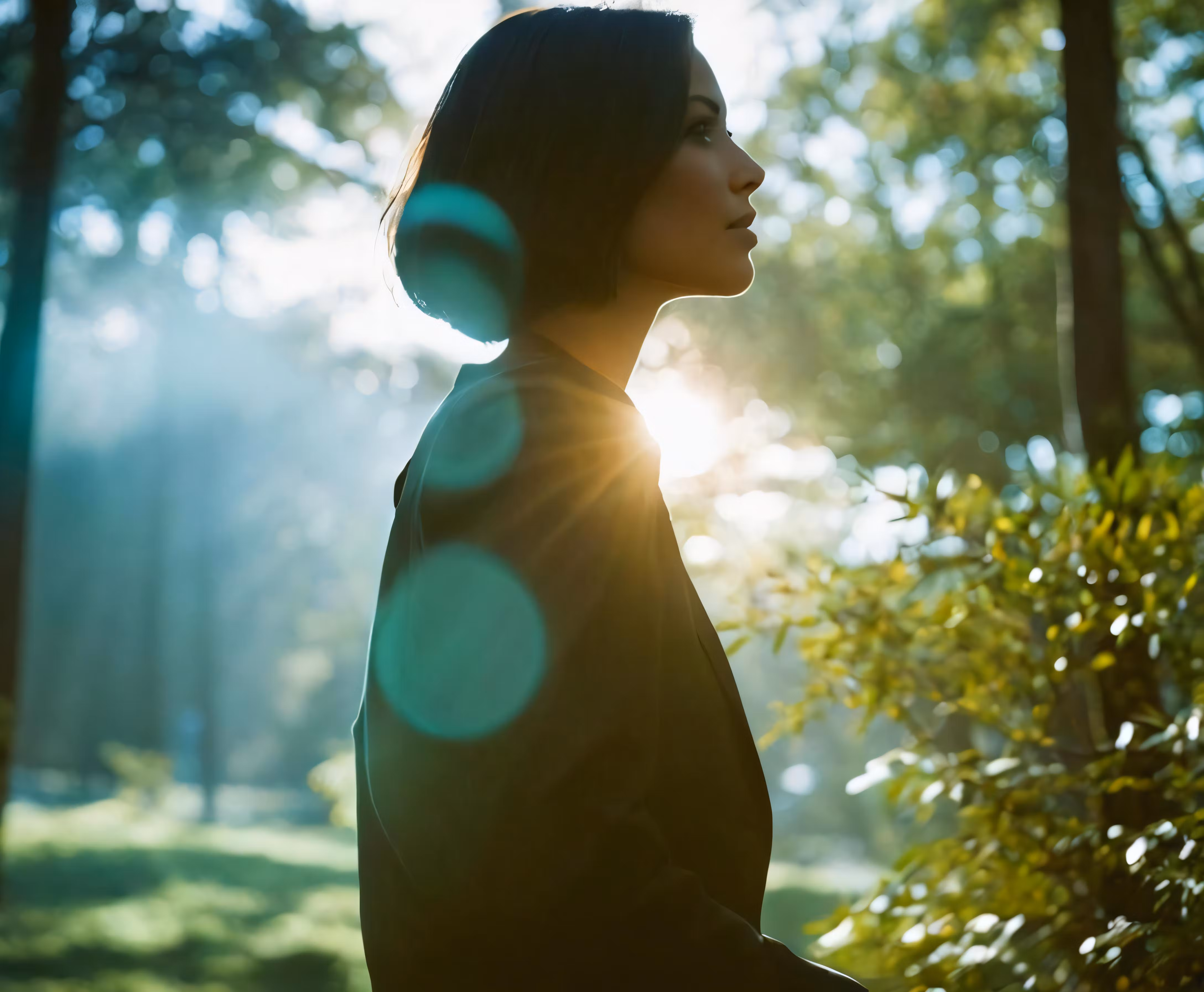 High resolution picture, free to use, the woman is posing for a photo in the woods