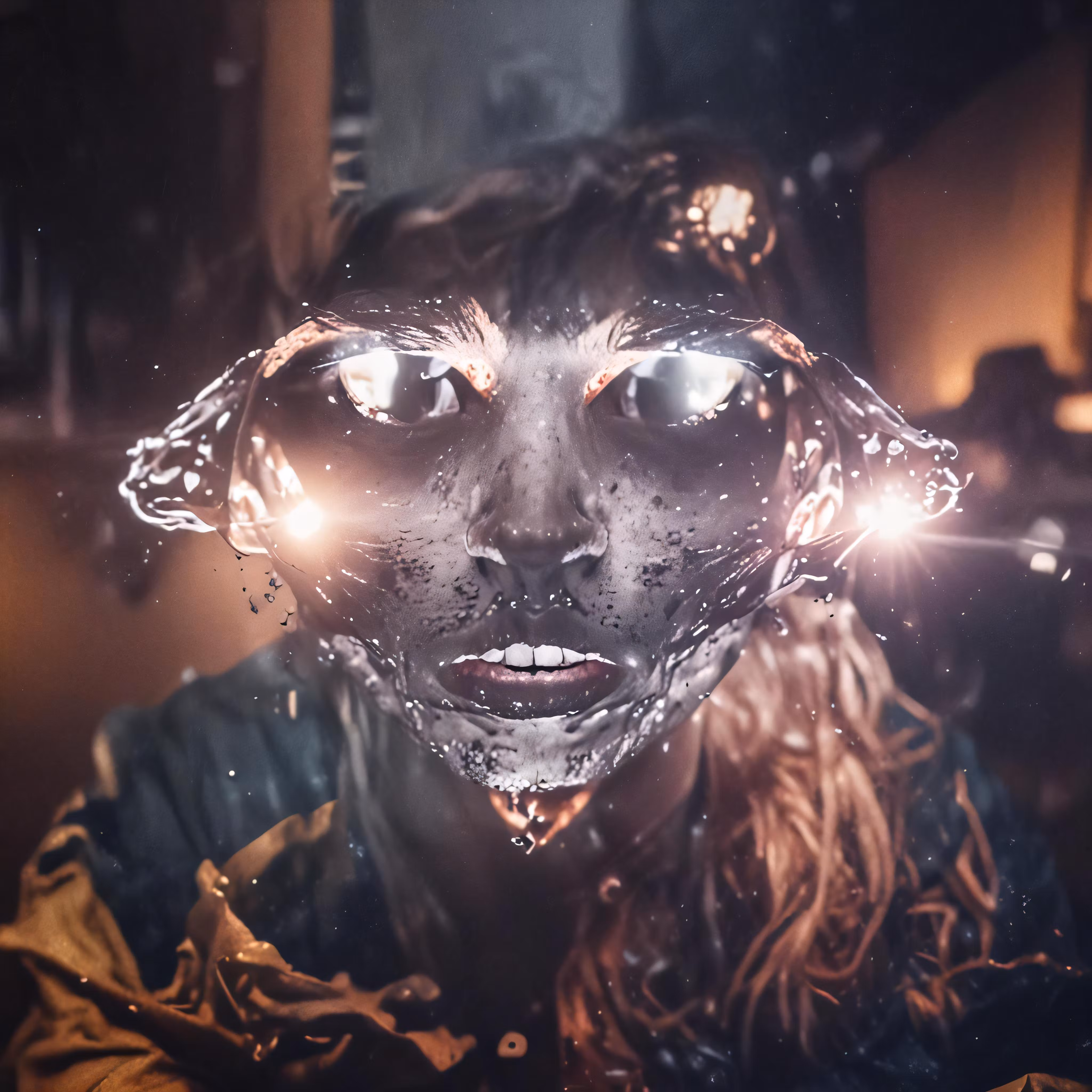 High resolution picture, free to use, the woman is surrounded by bubbles and lights