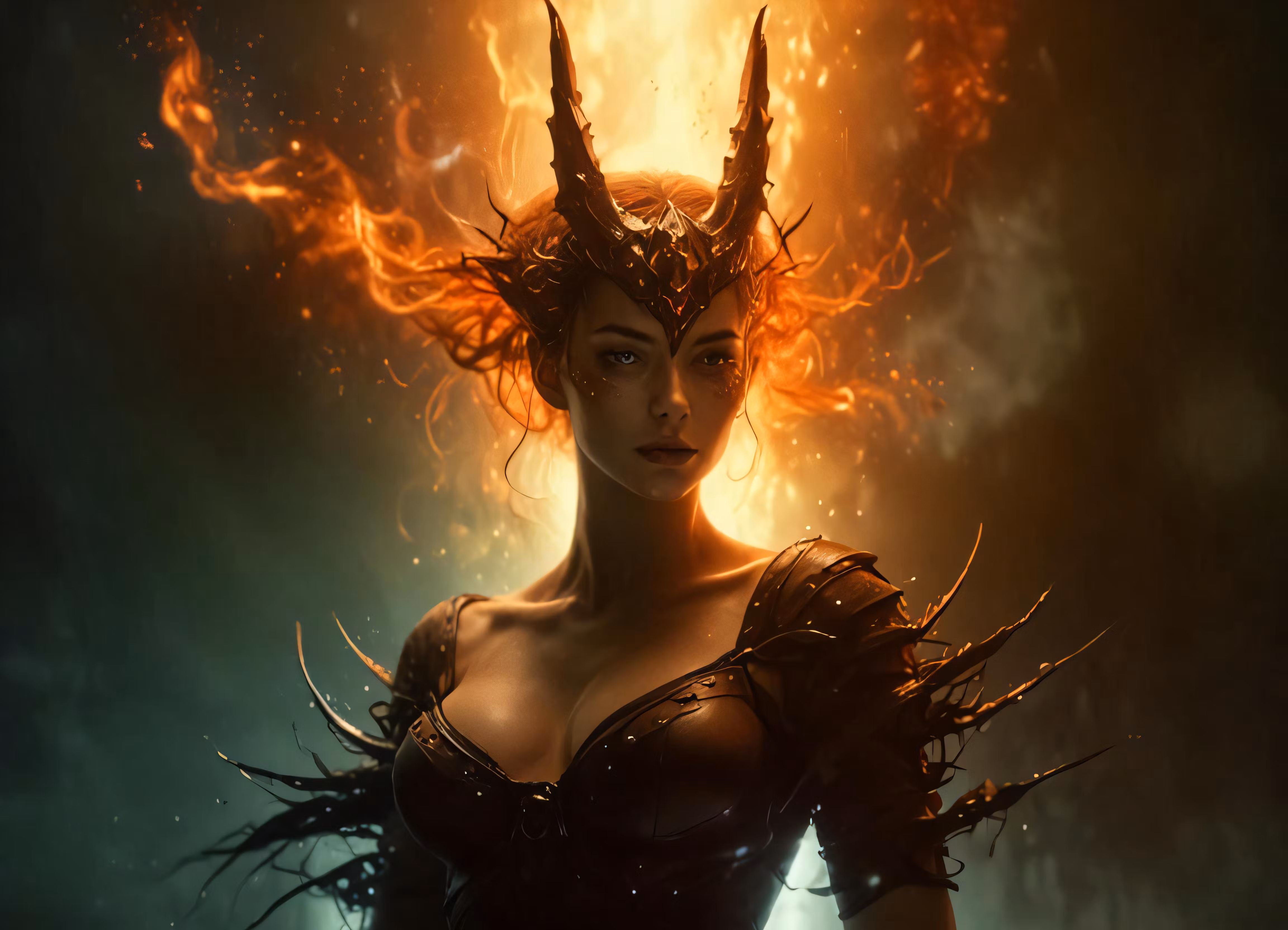 High resolution picture, free to use, the woman is wearing a demonic horned outfit