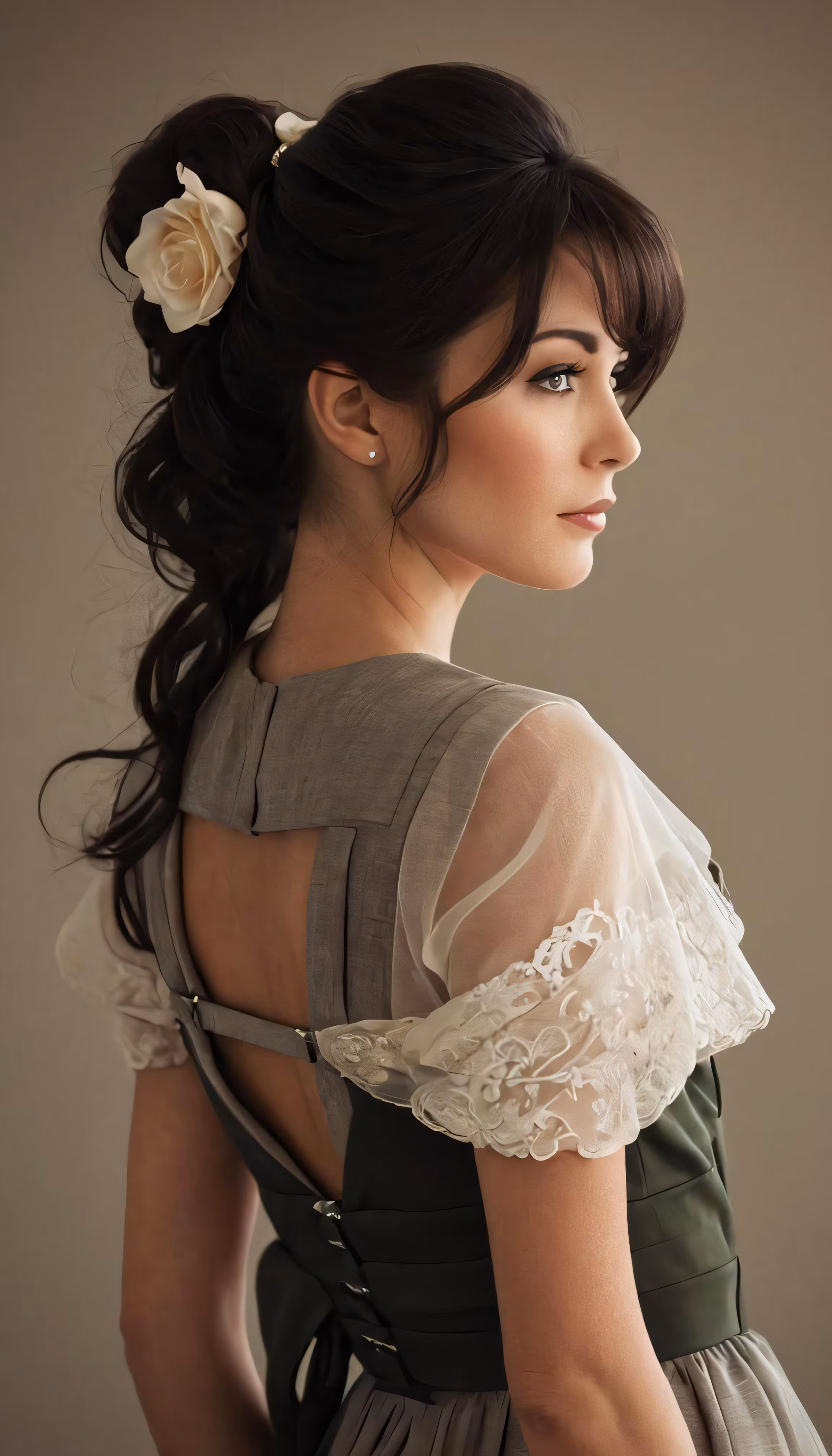 High resolution picture, free to use, the woman is wearing her hair in a bun