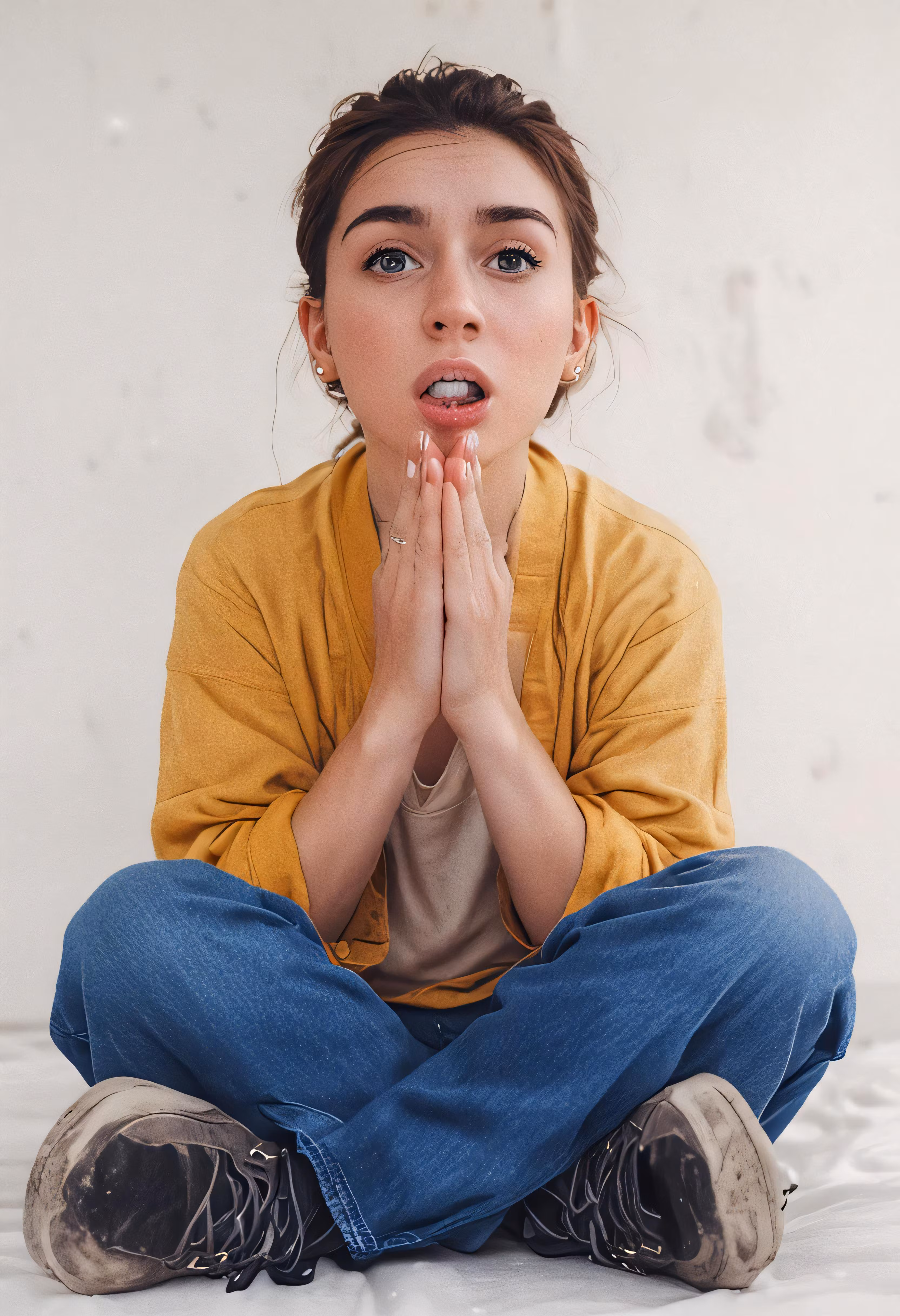 High resolution picture, free to use, the woman sits on her knees and prays to someone