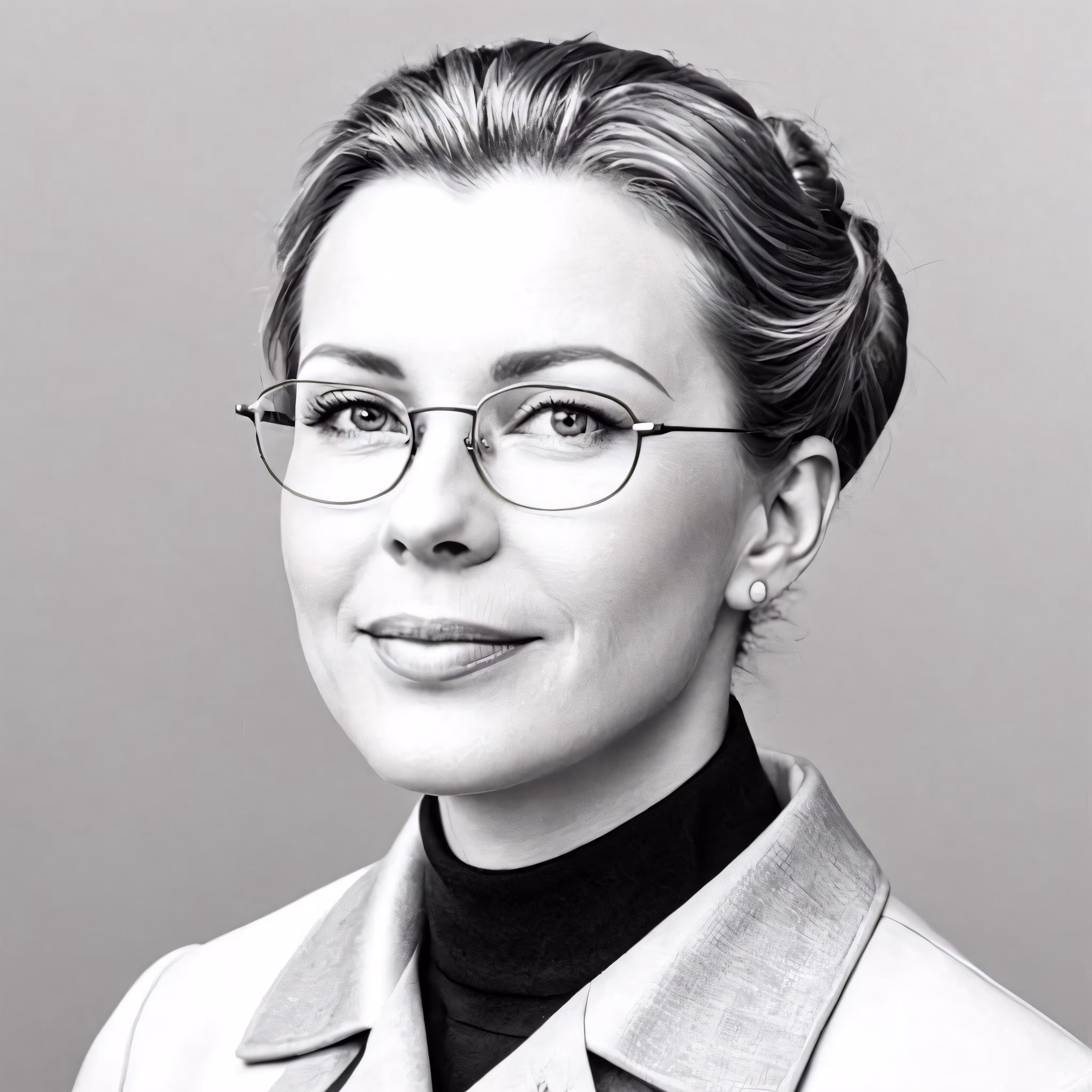 High resolution picture, free to use, the woman with glasses is wearing a suit