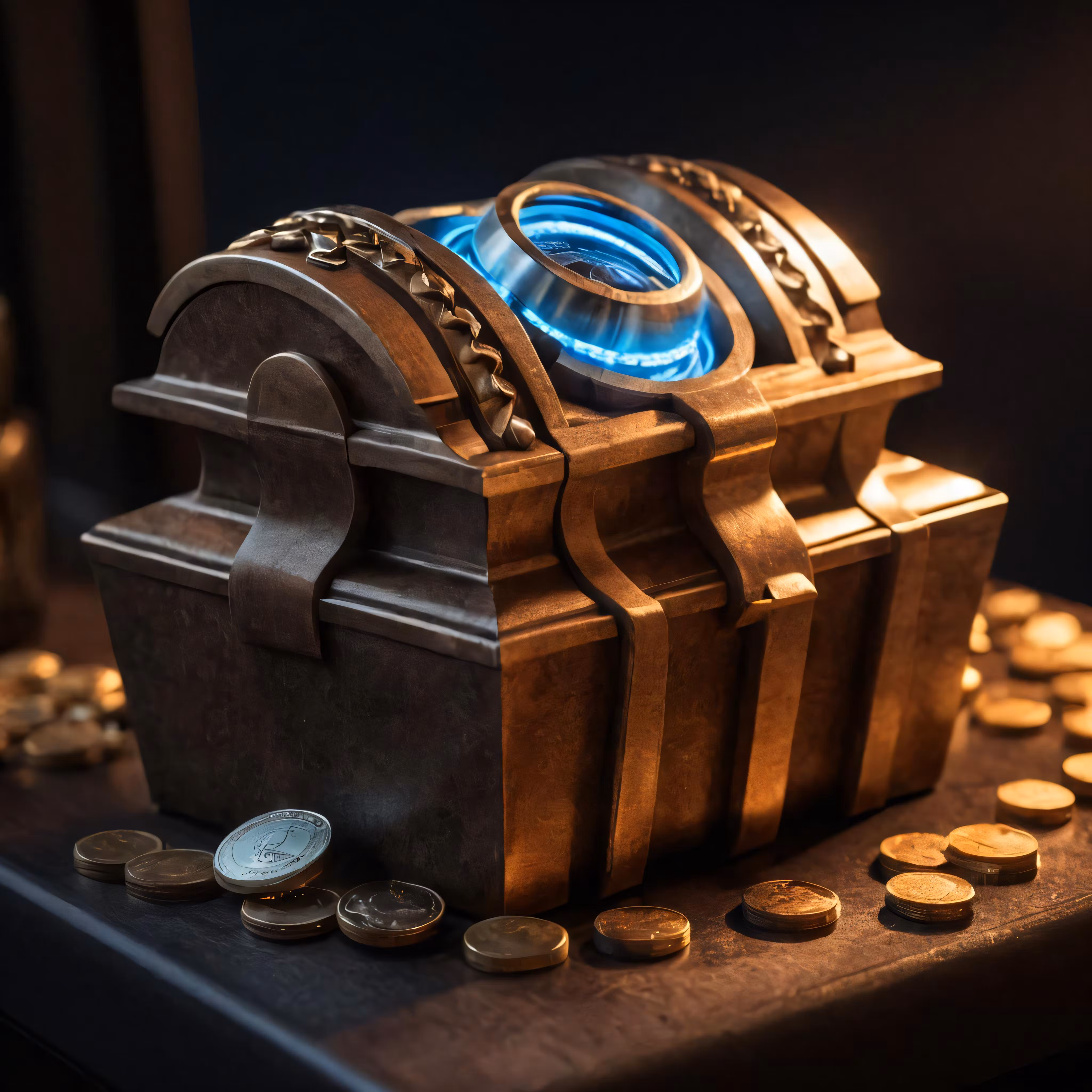 High resolution picture, free to use, the wooden block is adorned with jewels and coins