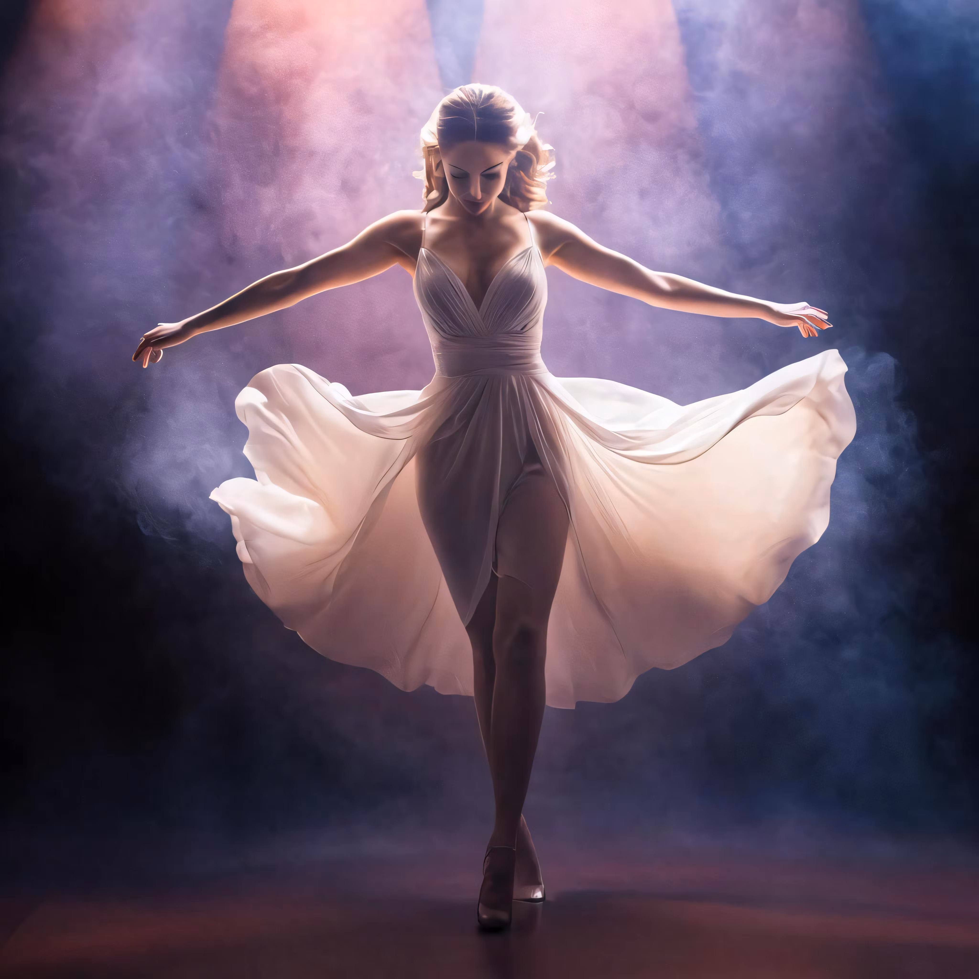 High resolution picture, free to use, the young ballerina wearing a white dress is dancing