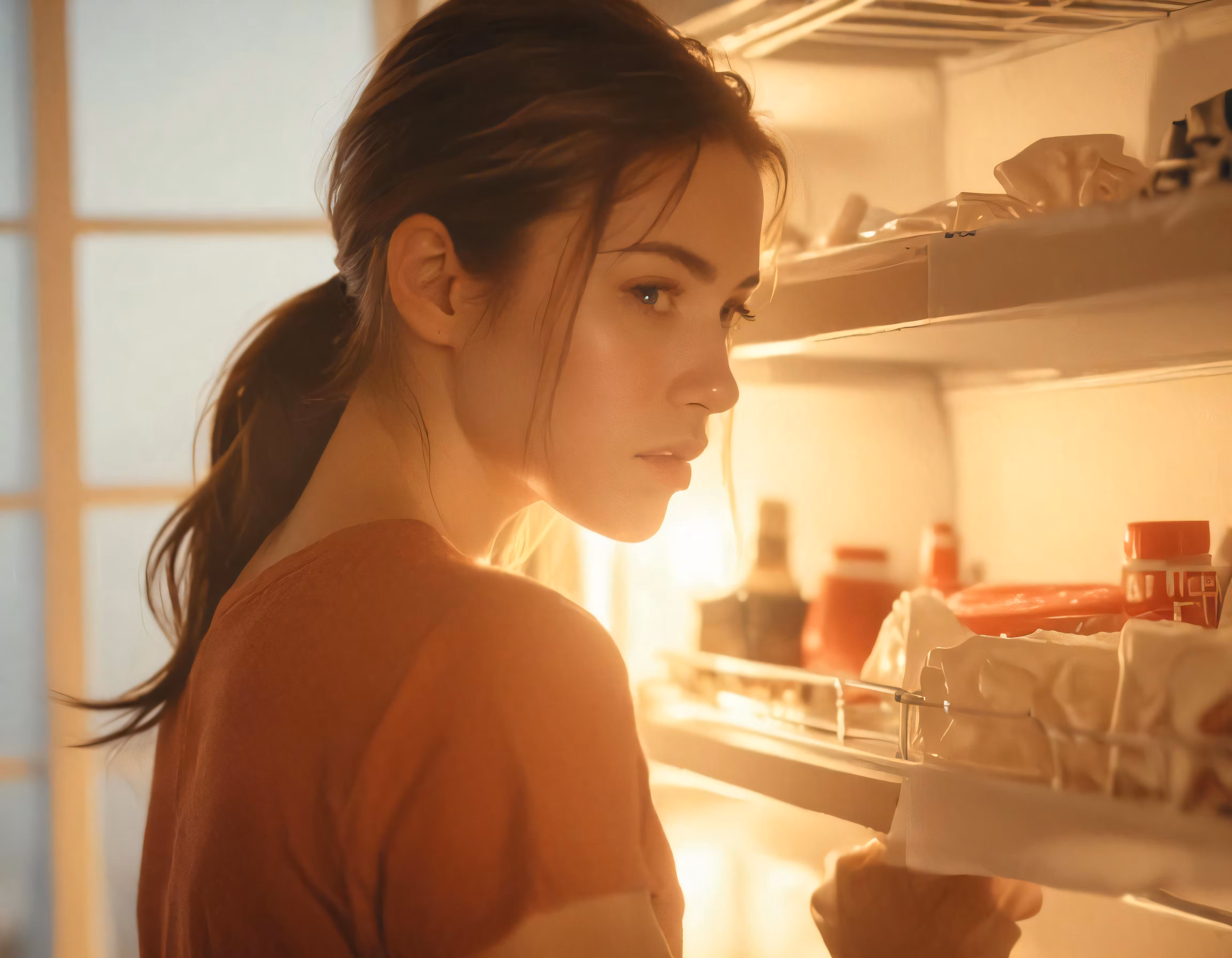 High resolution picture, free to use, the young woman is looking into the fridge for something