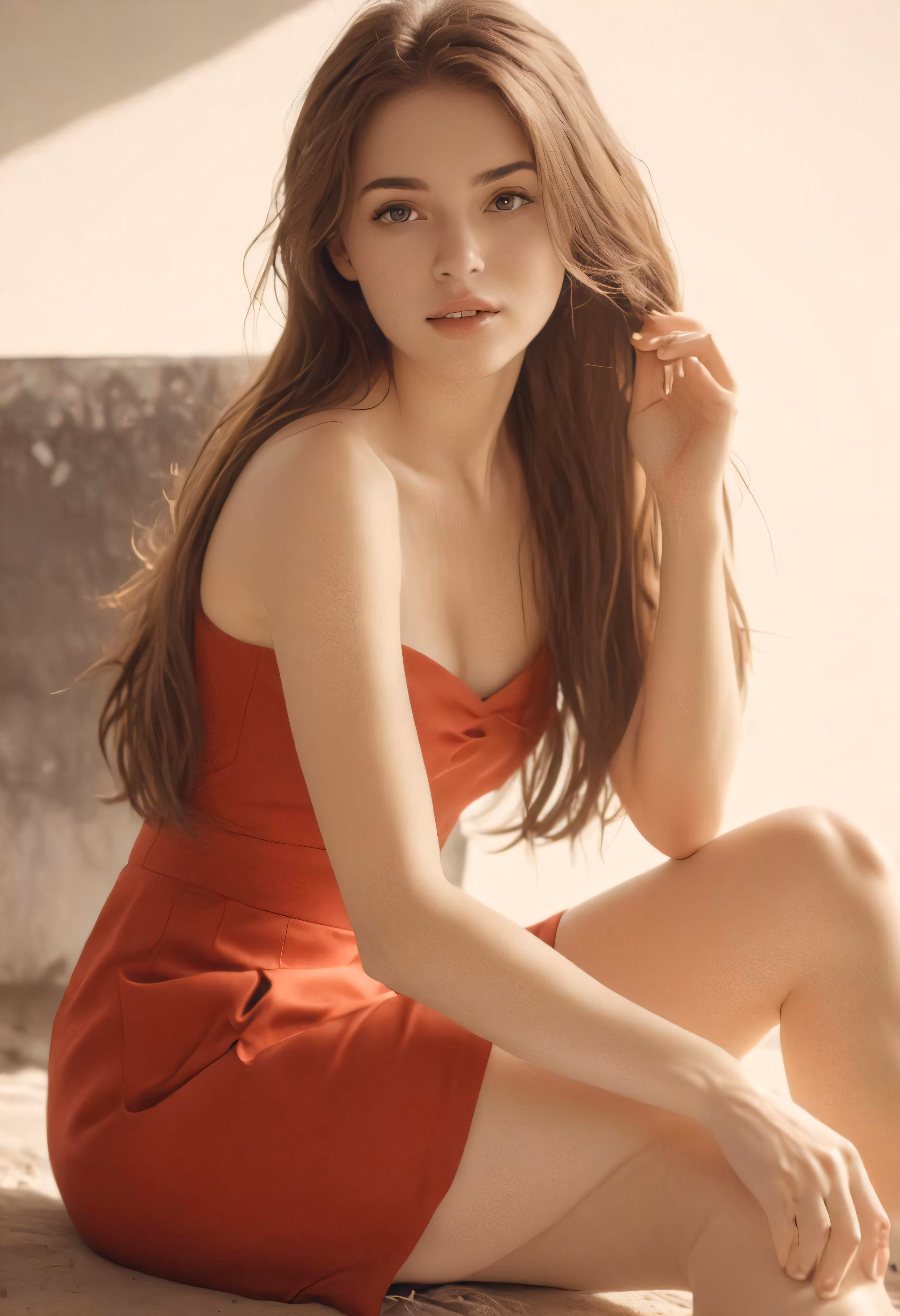 High resolution picture, free to use, the young woman is sitting in a short dress
