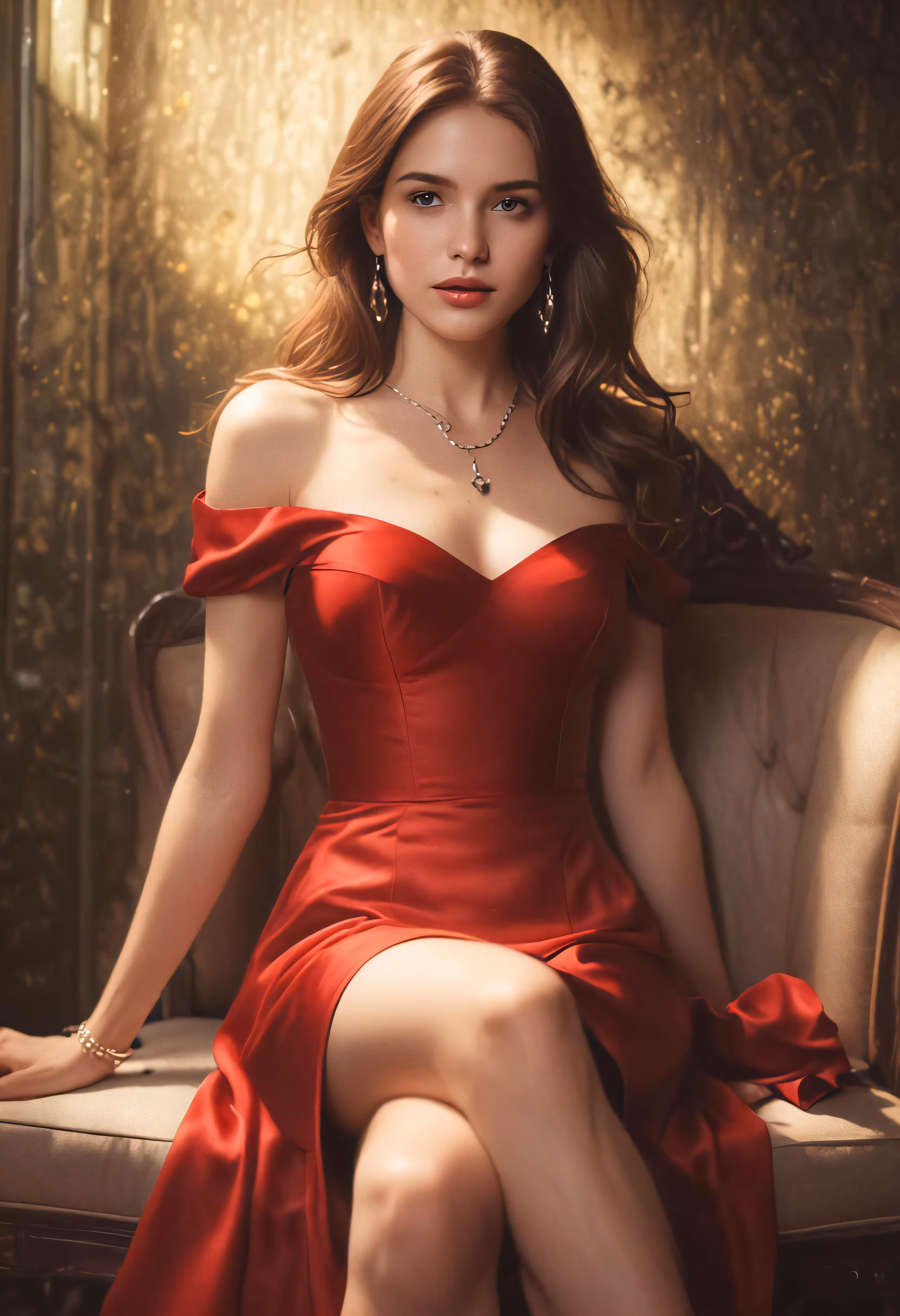 High resolution picture, free to use, the young woman sits on the couch posing for a photo