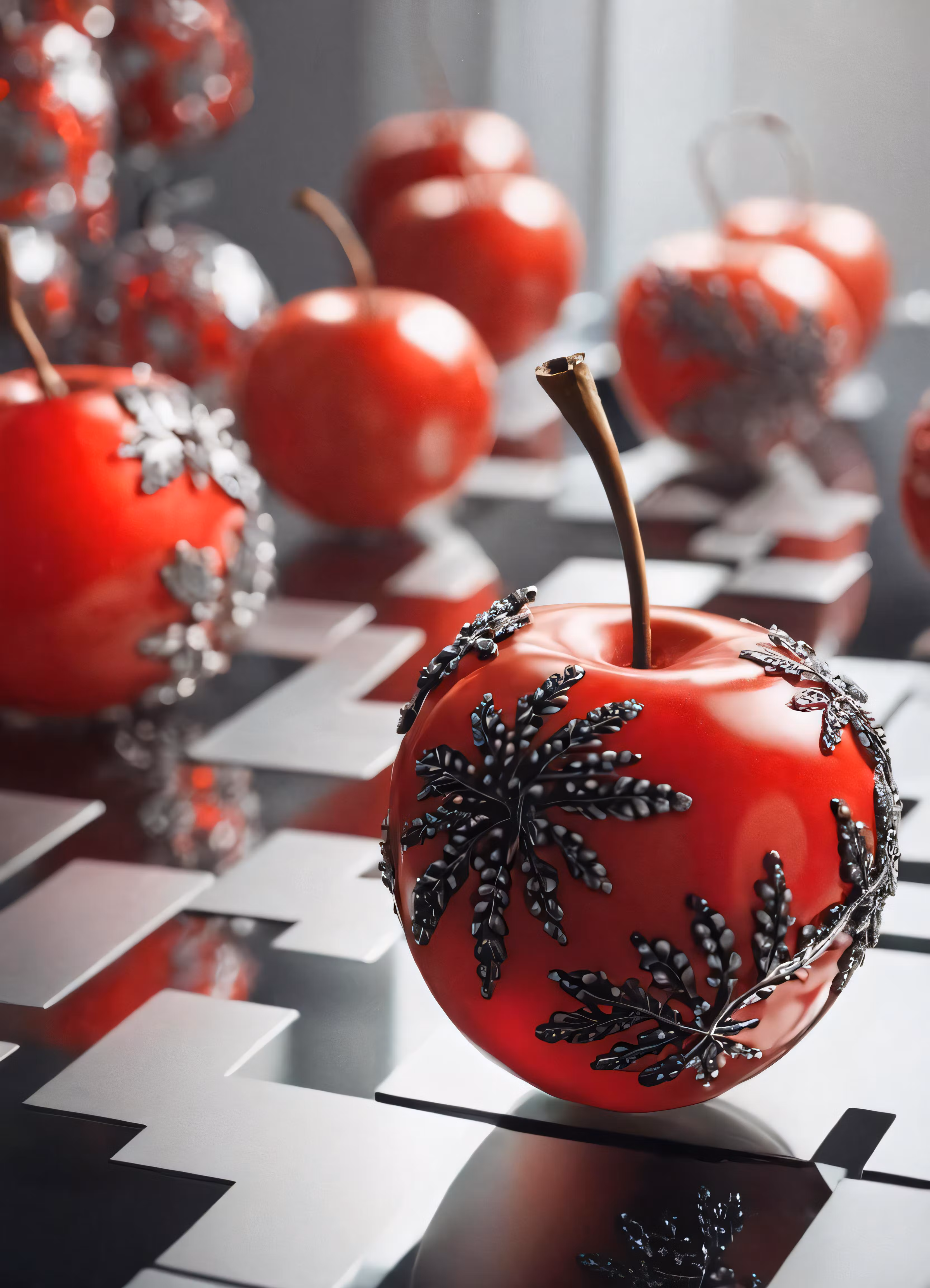 High resolution picture, free to use, there are apples with decorations on them on the table