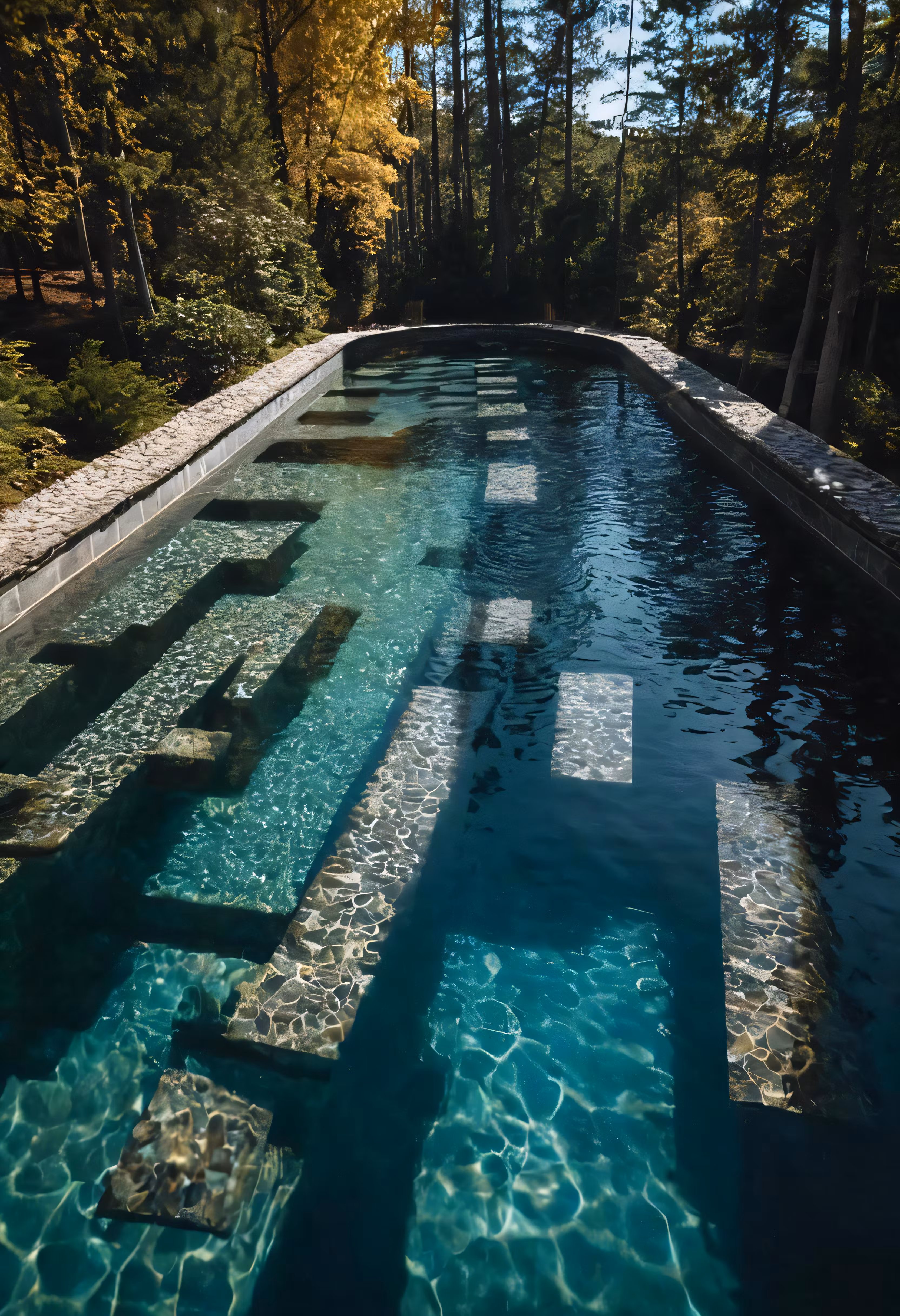 High resolution picture, free to use, there are several sections of a swimming pool near trees